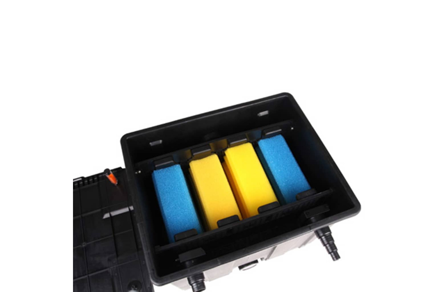 This bio pond filter is delivered with filtering material (pump is not included). The bio pond filter can be connected to a UV-C clarifying device (not included).