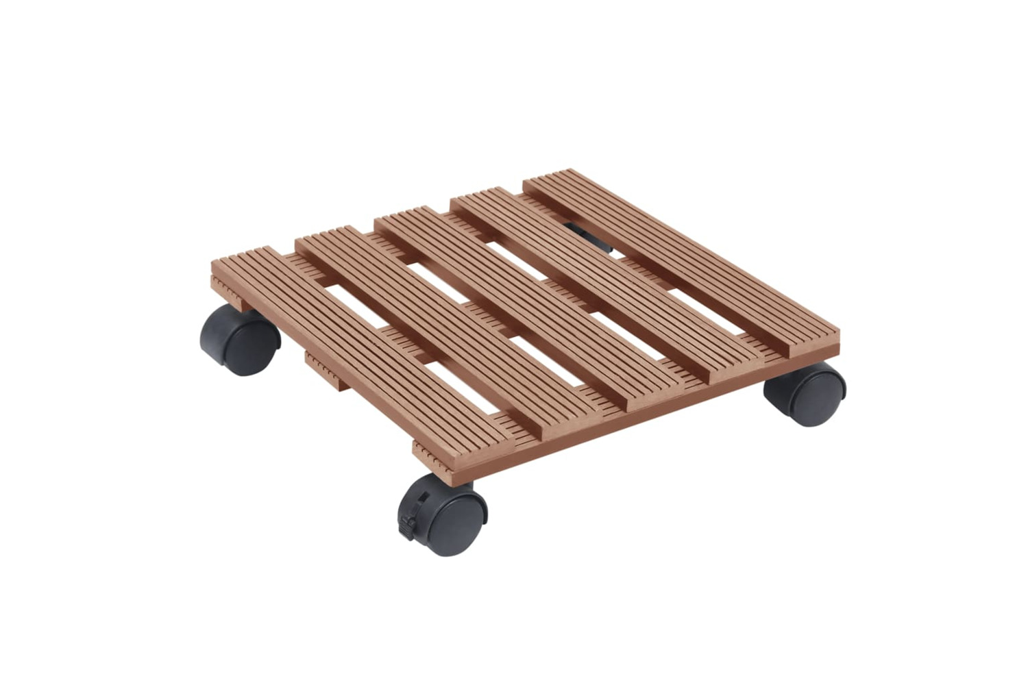 These plant caddies are made of wood-plastic composite, making them durable, weather-resistant and suitable for outdoor use. Thanks to the 360?? rotatable castors, the plant rollers can be moved about effortlessly. There are also brakes on two castors to help you stop the plant stand easily.