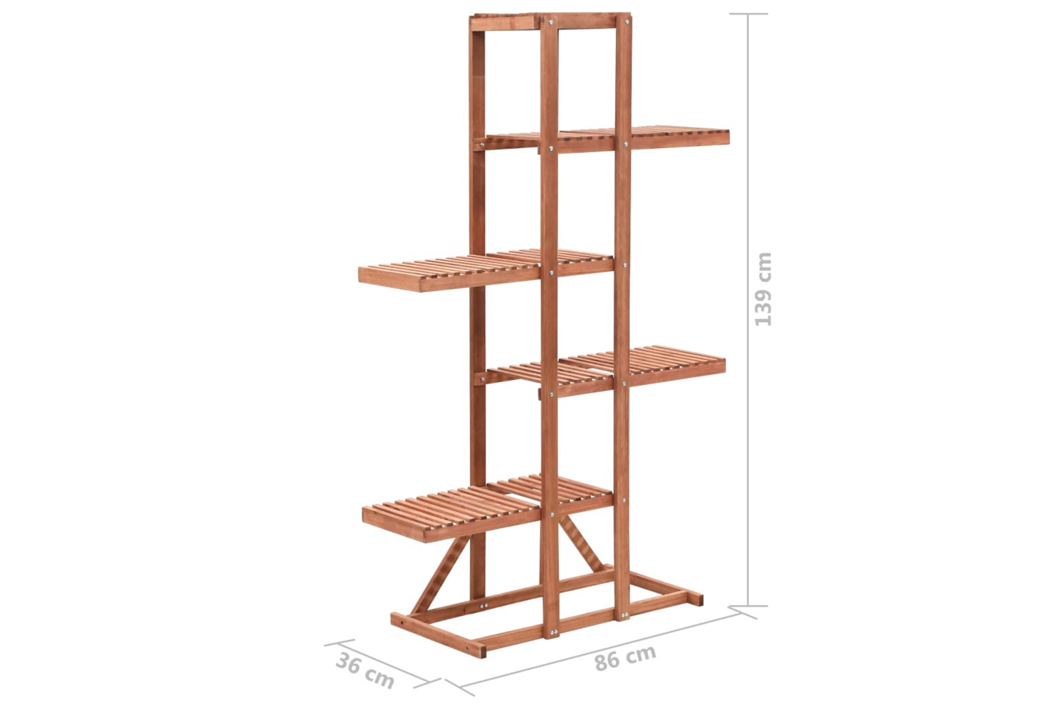 Crafted of solid cedar wood, the free-standing plant rack is durable. This planter rack is easy to assemble.