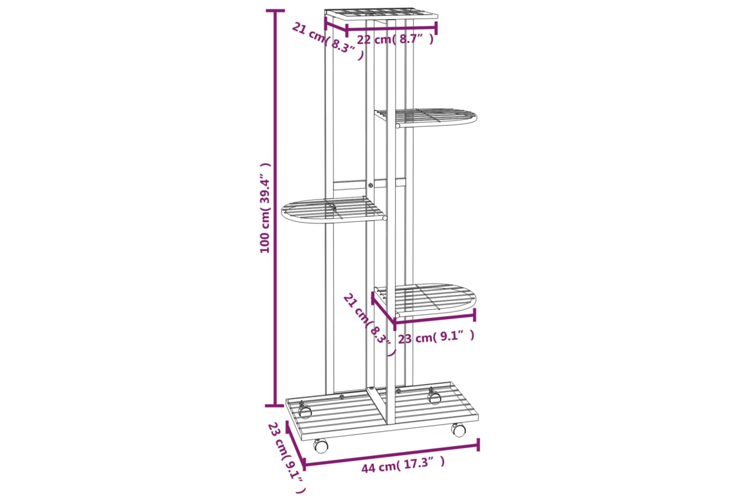 - Dimensions: 44 x 23 x 100 cm (W x D x H)