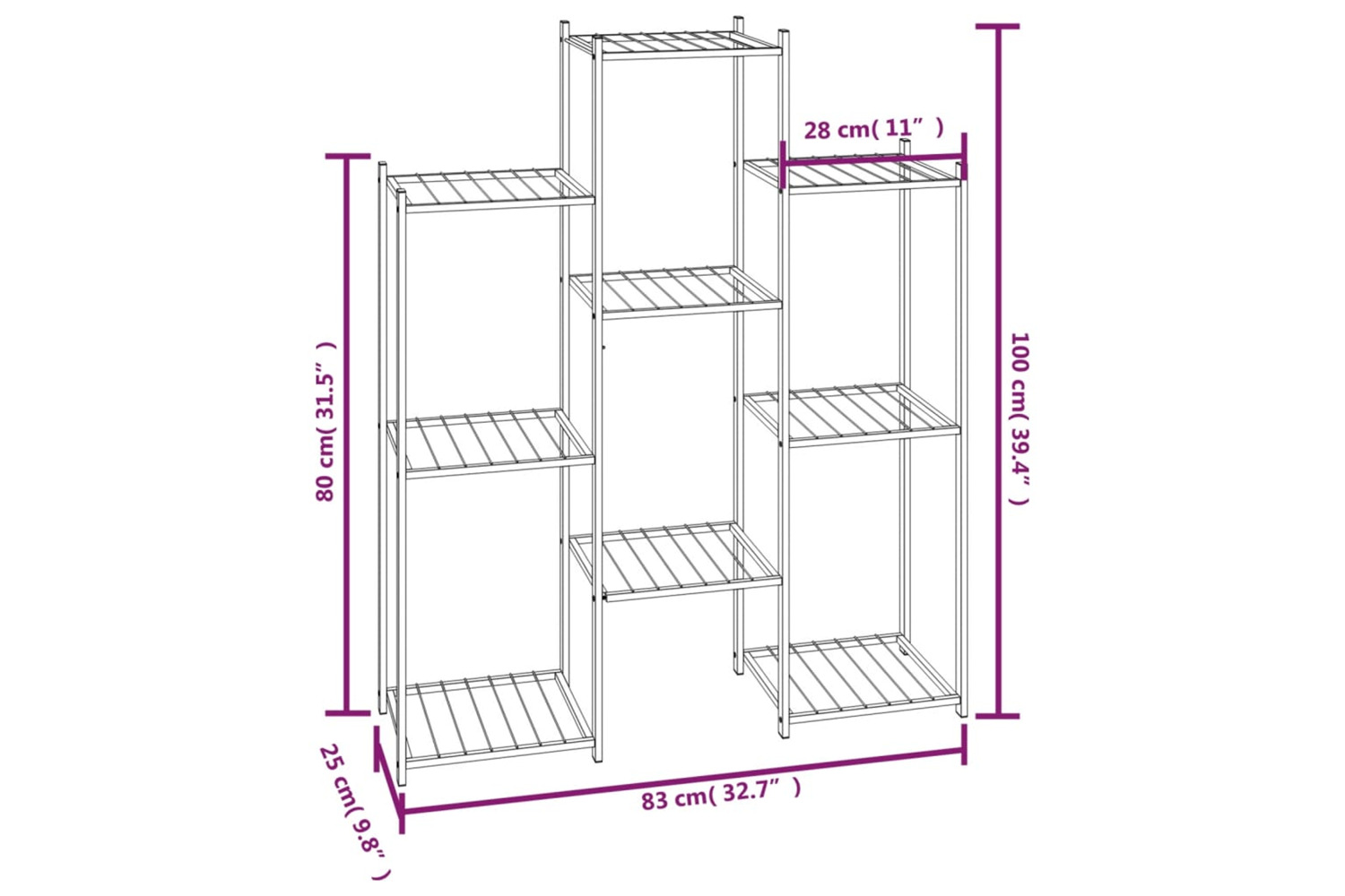- Dimensions: 83 x 25 x 100 cm (W x D x H)