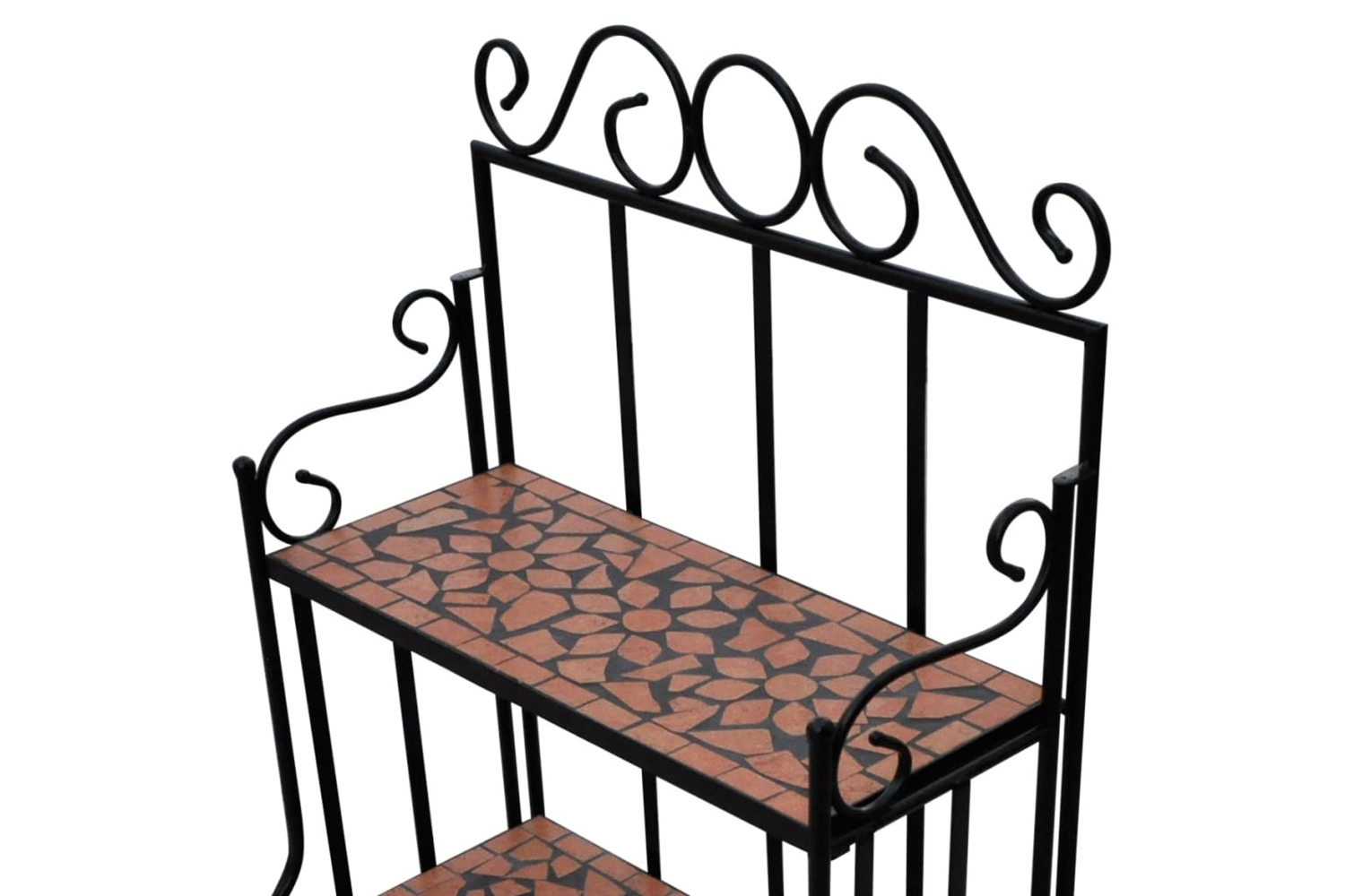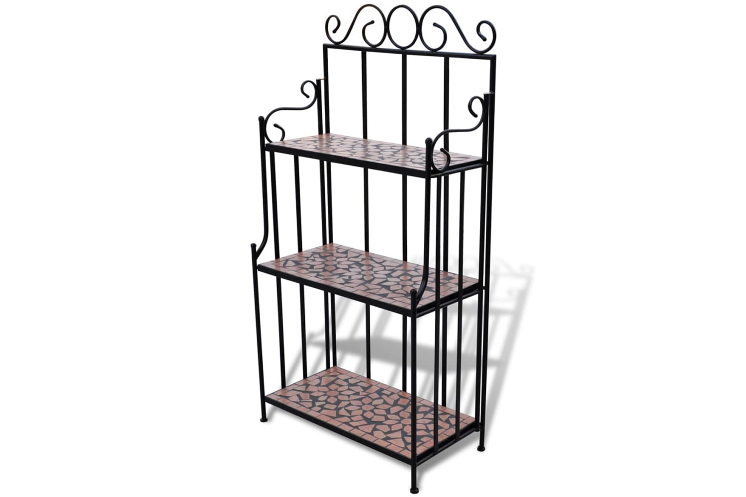 This mosaic plant stand features elegantly-curved iron frame and 3 mosaic-patterned ceramic layers. It will surely become an eye-catcher in your garden, balcony, terrace, etc.