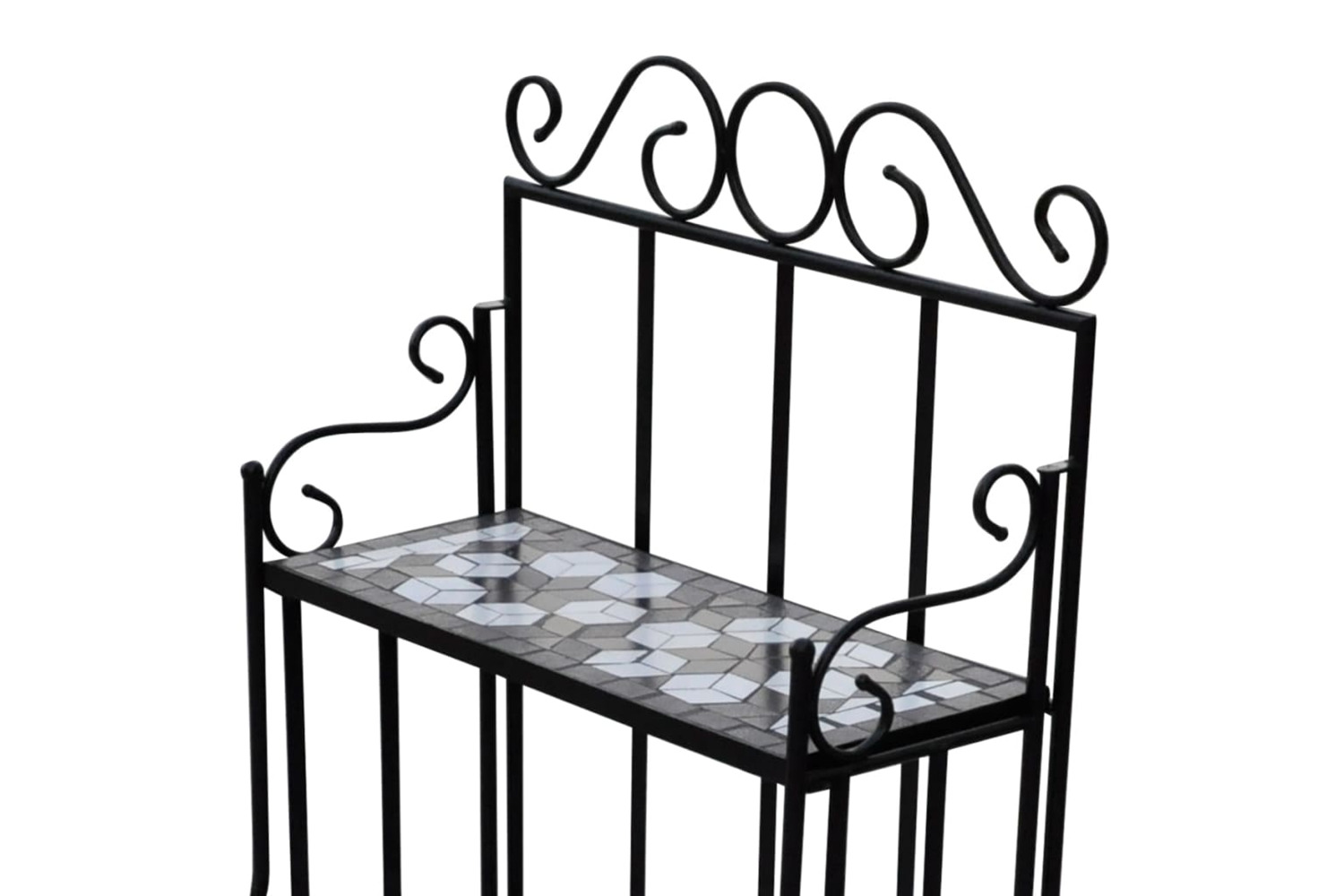 This plant stand features elegantly-curved iron frame and 3 mosaic-patterned ceramic layers. It will surely become an eye-catcher in your garden, balcony, terrace, etc.