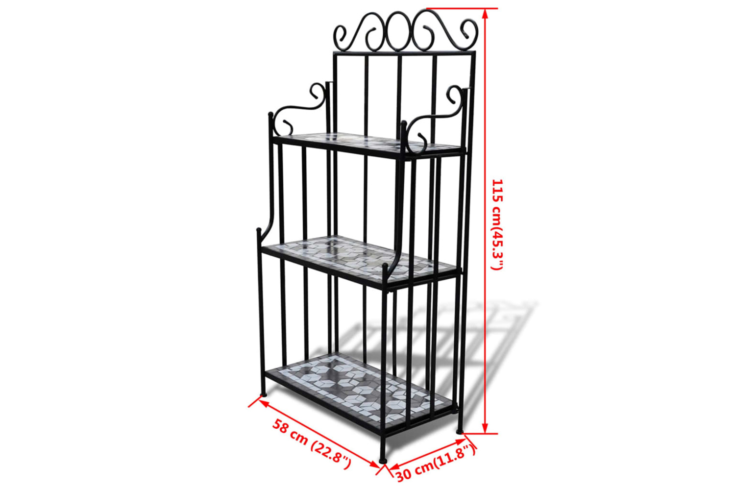 The 3-layer plant rack has a height of 115 cm, and could be perfectly placed against any wall. Its iron frame contributes to the sturdiness, while the ceramic top is also easy to clean. It is very durable for a long-term service life. Please note this product is not suitable to be left outside in cold condition.
