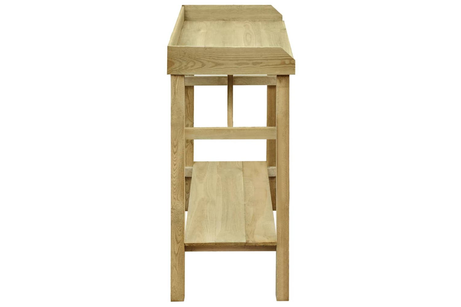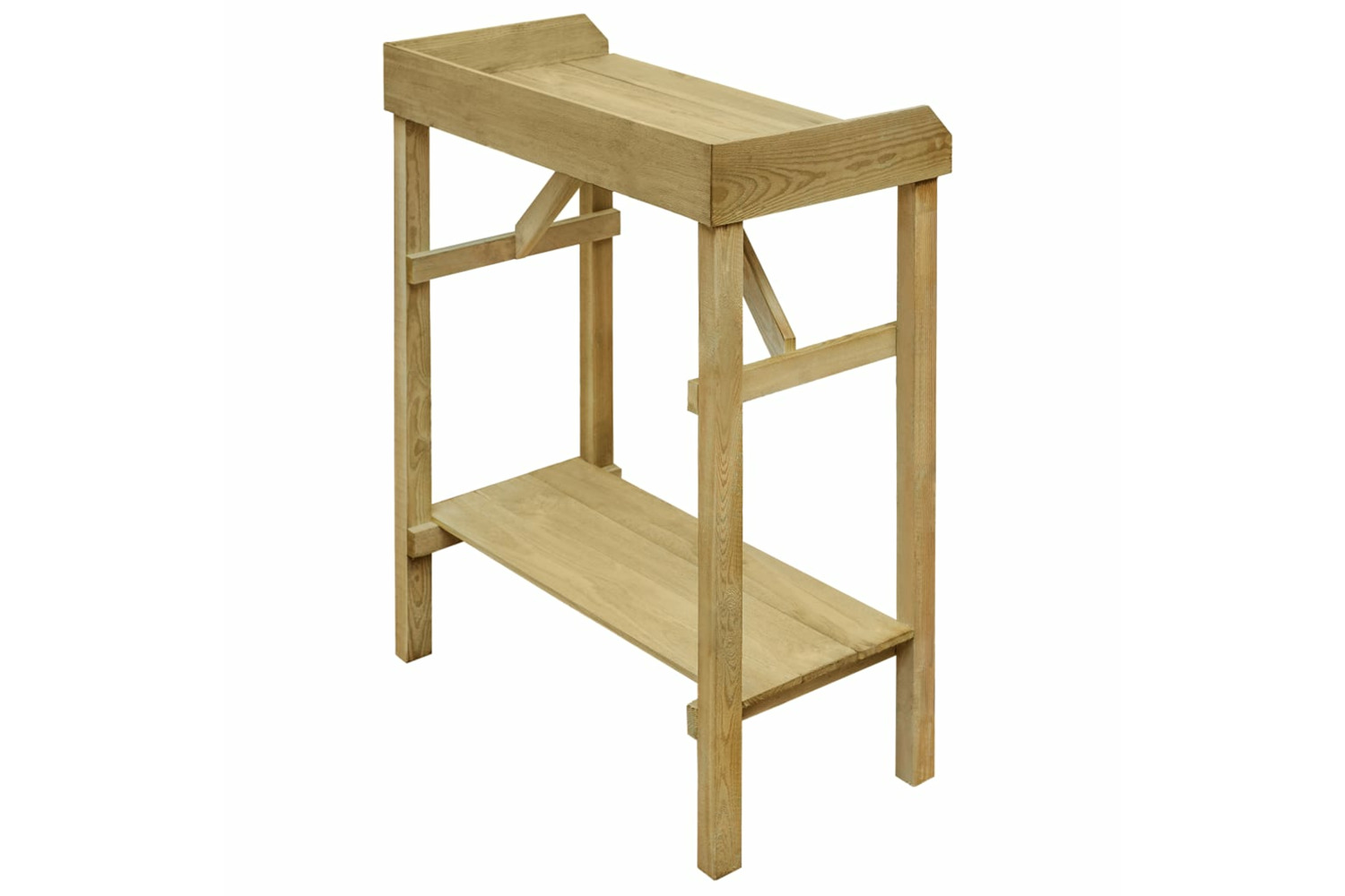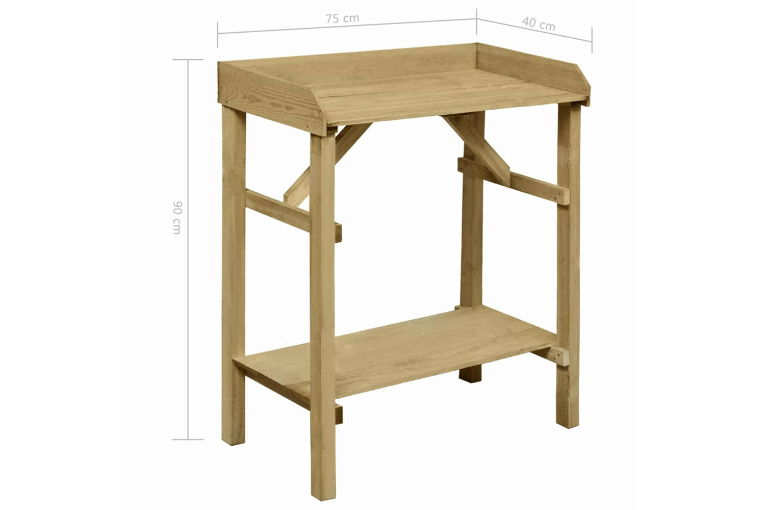 Crafted from high-quality, impregnated pinewood, this table is solid, durable and weather resistant. The cross back design also adds to the stability of the whole frame. It comes with a large working surface and one bottom shelf to keep your flower pots well displayed. It is easy to assemble.