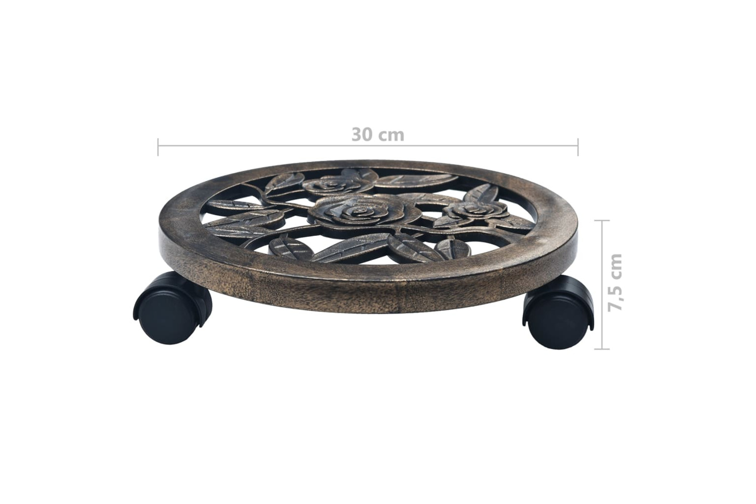 These plant caddies are not only durable and unbreakable, but also UV resistant and weatherproof. They are made of plastic PP (polypropylene) and exude a sophisticated look of cast iron. These nice rolling plant stands will also make a decorative addition to any living space.