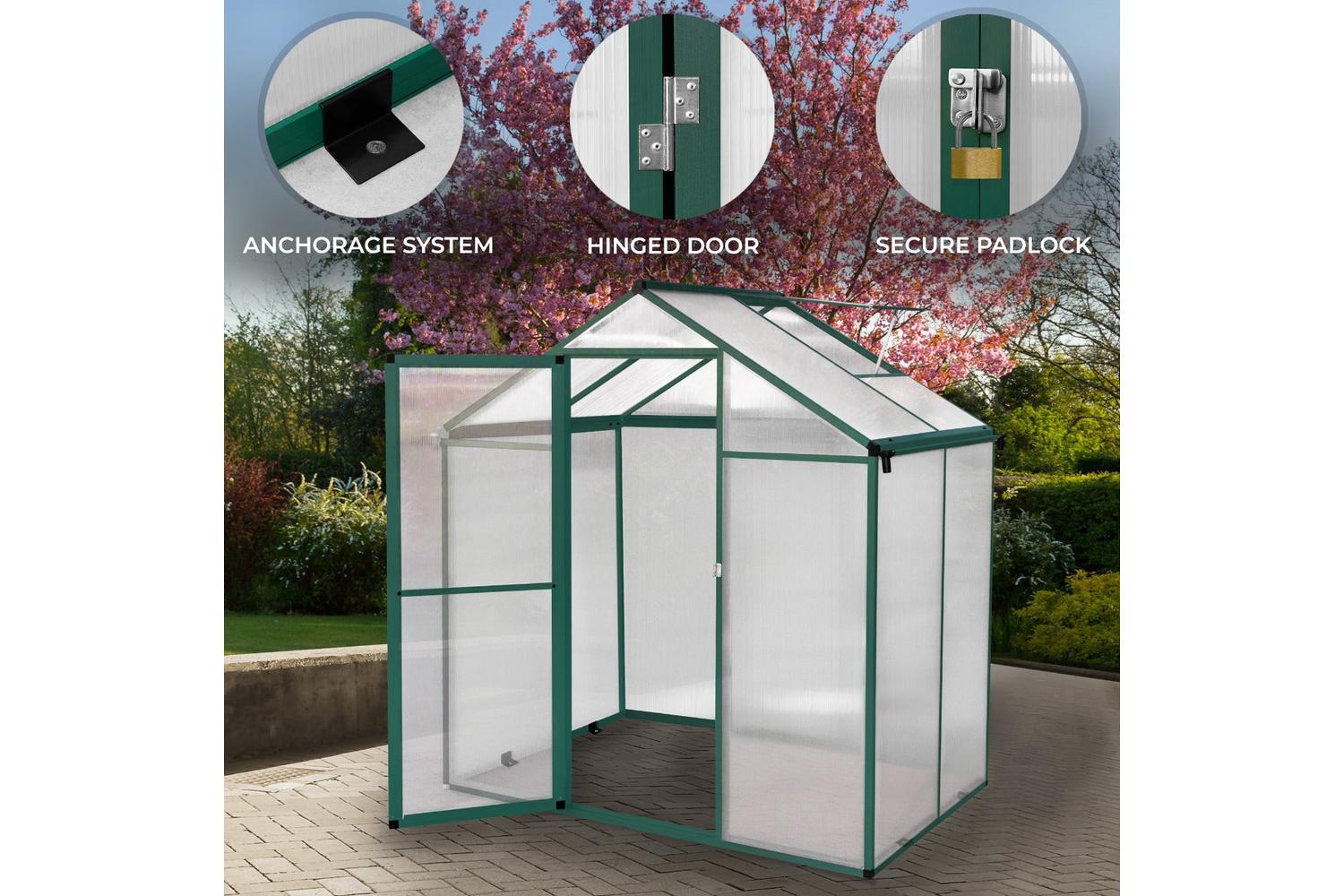 The MONSTERSHOP 210607 - Polycarbonate Greenhouse''' is here to transform your Irish garden into the ultimate growing sanctuary. Crafted with a steadfast powder coated green aluminium frame, this stunning product falls under the DIY, garden, gardening decor and landscaping categories, because it is not just aesthetically pleasing, but highly beneficial for nurturing your plants all-year-round.