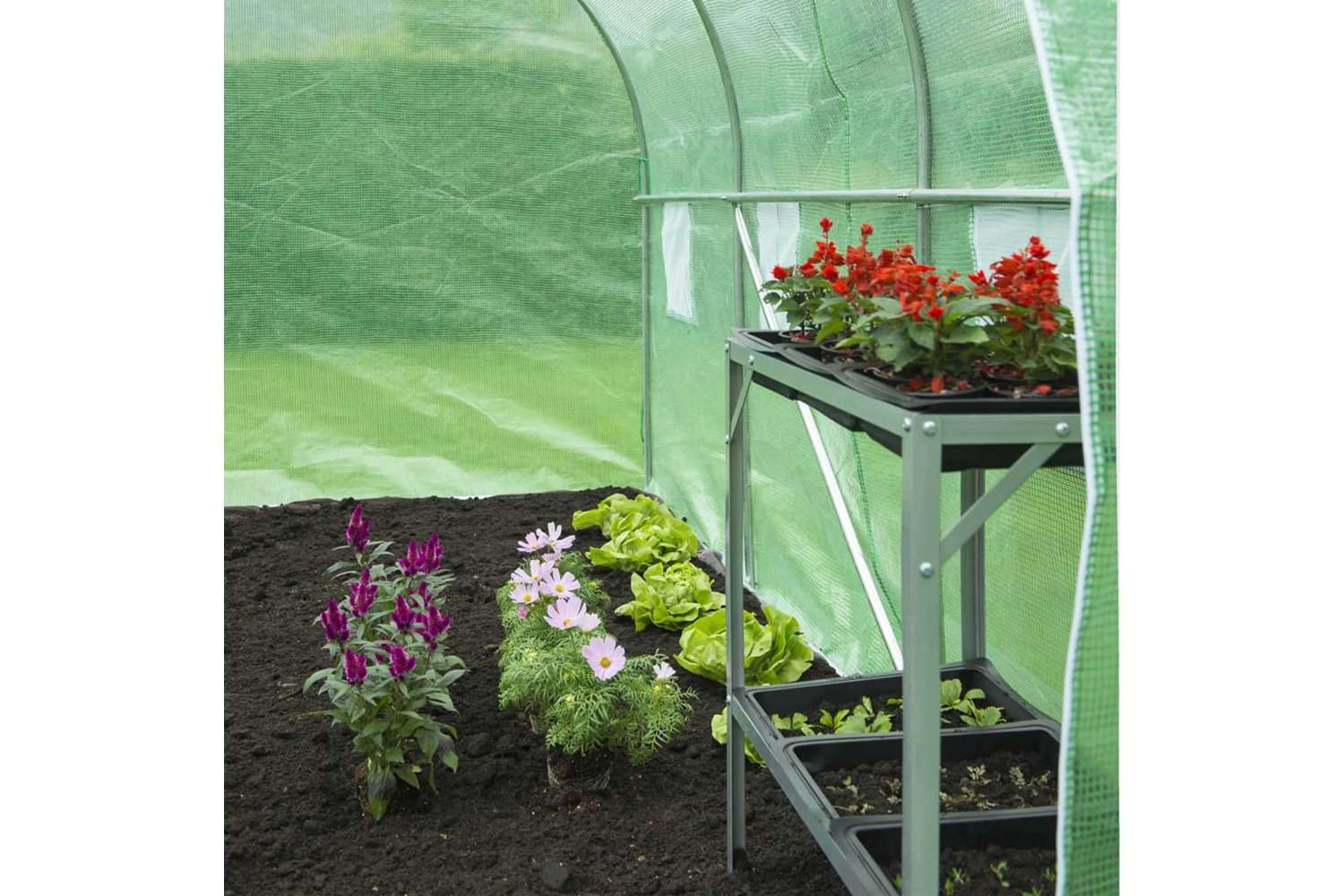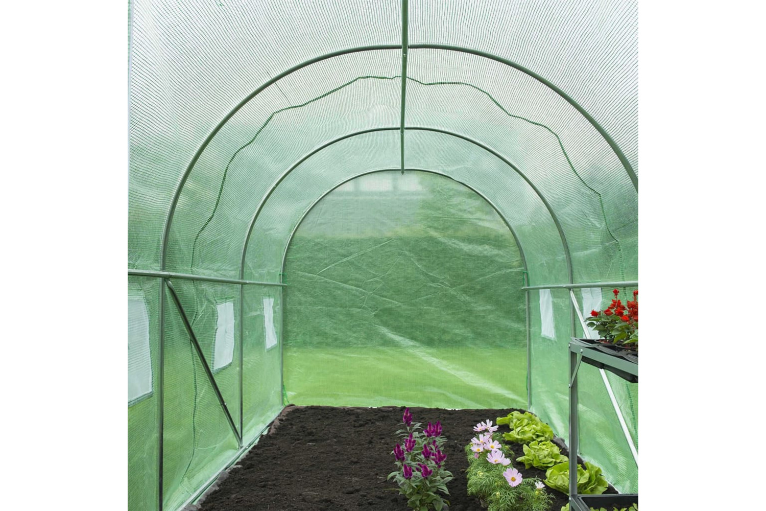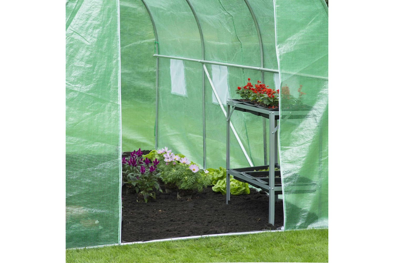 - Material: Galvanised metal frame + polyethylene cover