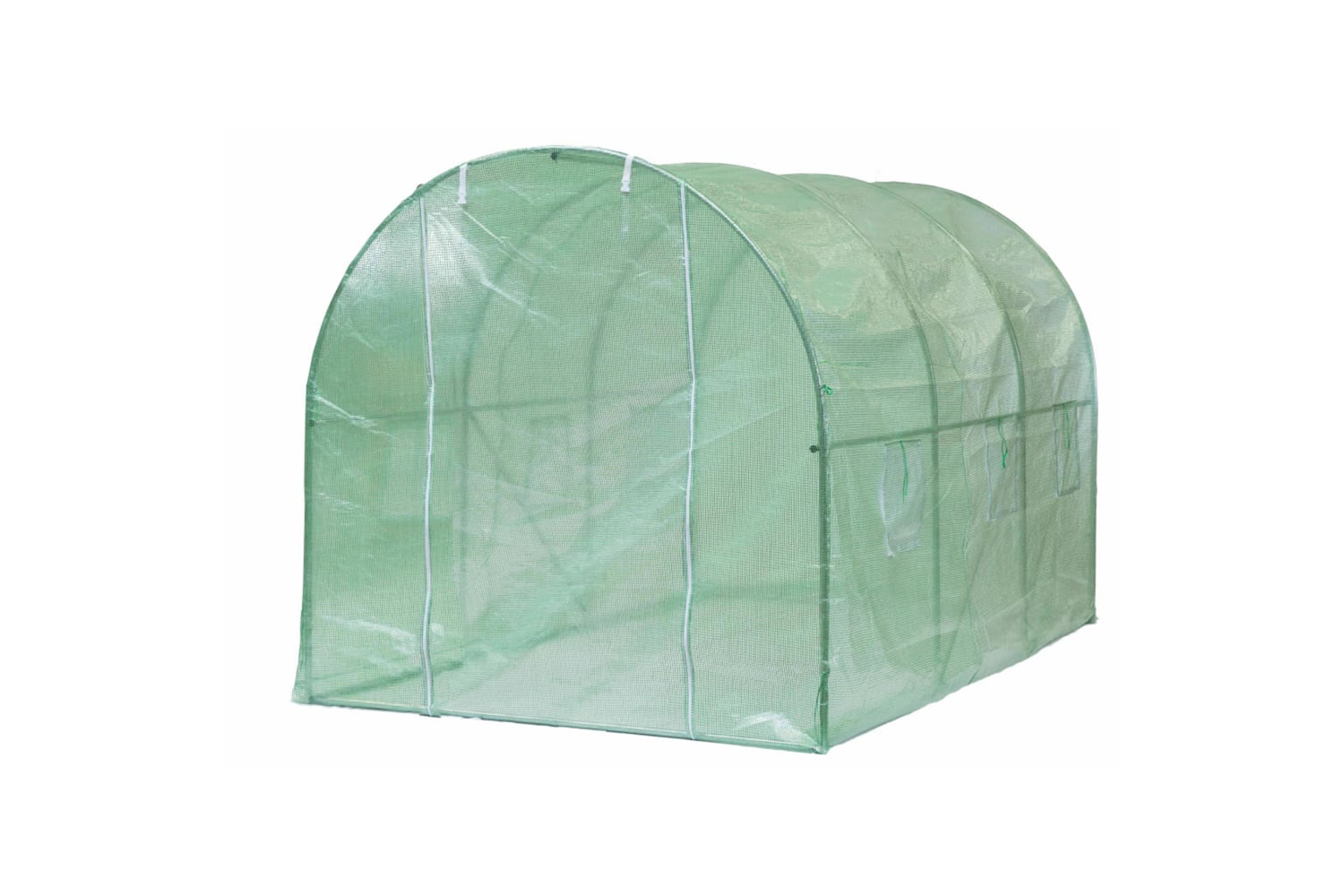 The greenhouse consists of a sturdy, metal frame and a tear-resistant cover. The cover is made of durable, UV-proof, frost-resistant polyethylene with a density of 140 g/m?, consequently you will no longer have to worry about damage caused by sunlight or the cold. Meanwhile, the transparent green cover also enables the sunlight to reach the plants. Thanks to the reinforced foil, you are nailed down a longer service life as well as high tear and tensile strength. For good aeration, this greenhouse is equipped with 6 lockable mosquito net ventilation openings and a central opening with zipper.