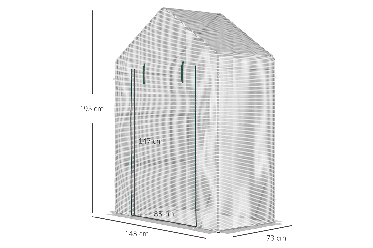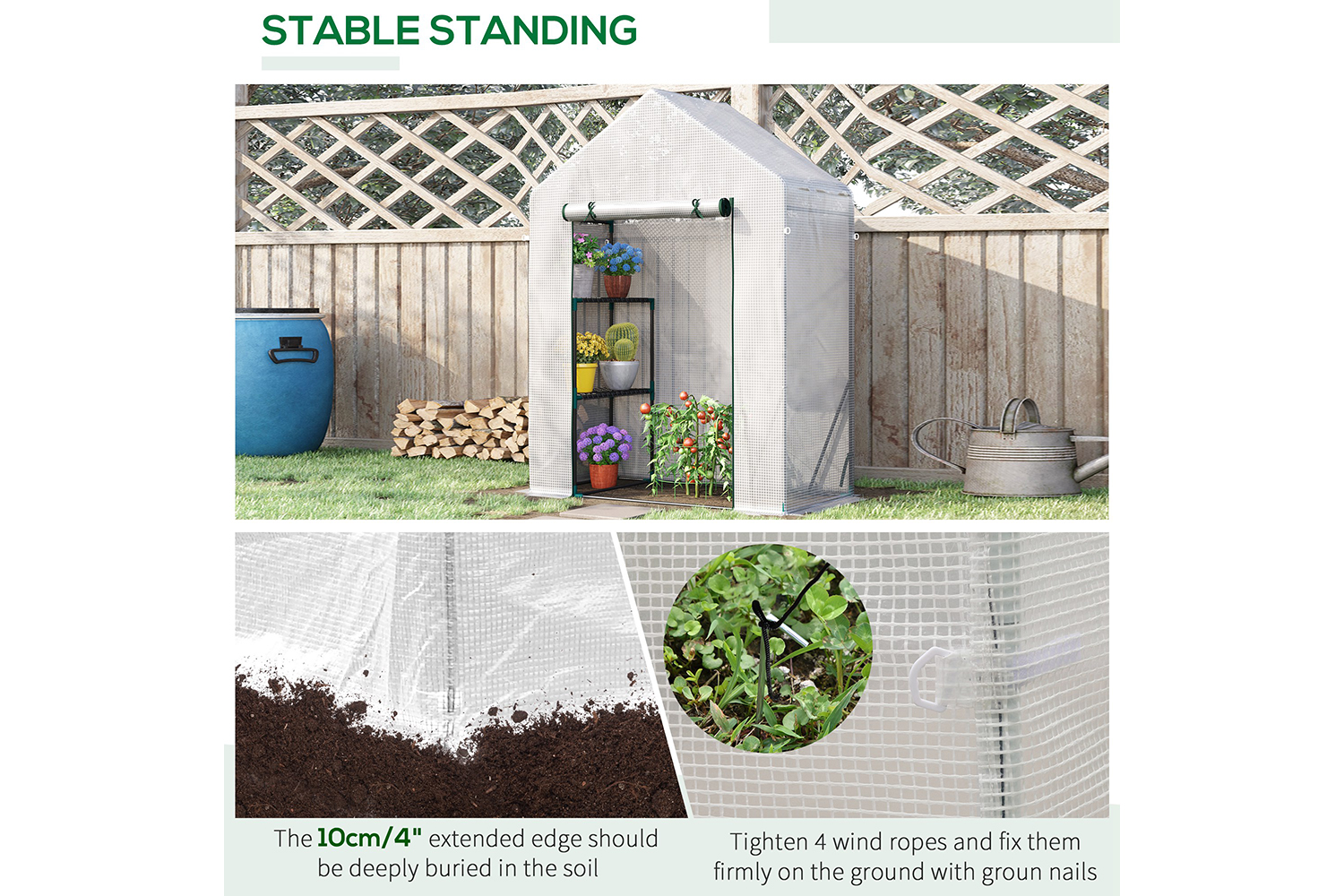 Get this portable greenhouse from Outsunny to extend your growing season by protecting plants from cold and birds. It comes with a steel frame for a steady core. The PE cover creates a protective shell, holding in the heat and shielding from wind and rain. The roll-up door, with zip fastening, allows you to enter and leave to access your plants at any time. Simply put up, go and grow. Do not leave standing in heavy weather conditions.