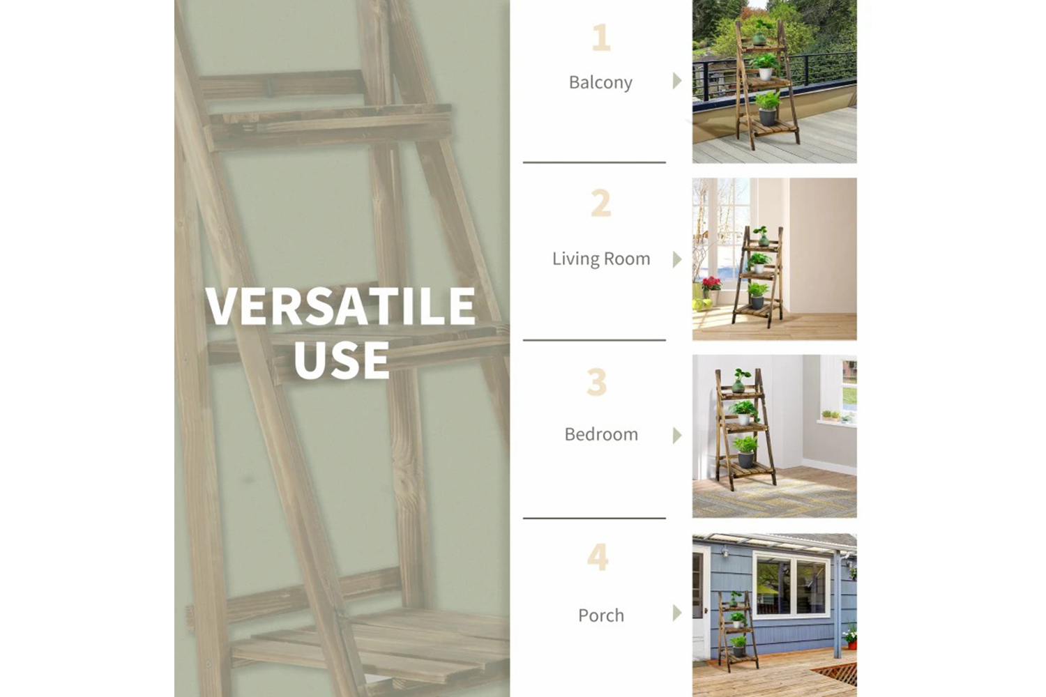 This Outsunny 3-tier pots stand is a great place for you to organize your pots and plants. Made from fir wood in a ladder design is great for small spaces. Ideal for patio’s, decks, balconies and small green houses. The structure creates a welcoming point in your back garden. This simplistic design can be put up in minutes.