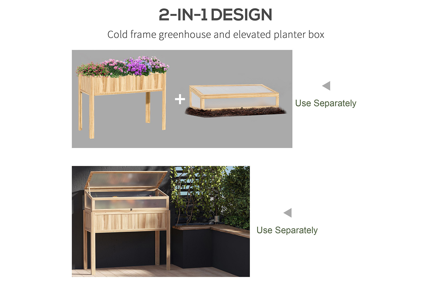 Outsunny Raised Garden Bed 2-in-1 Wood Cold Frame Greenhouse With Elevated Garden Box | Natural