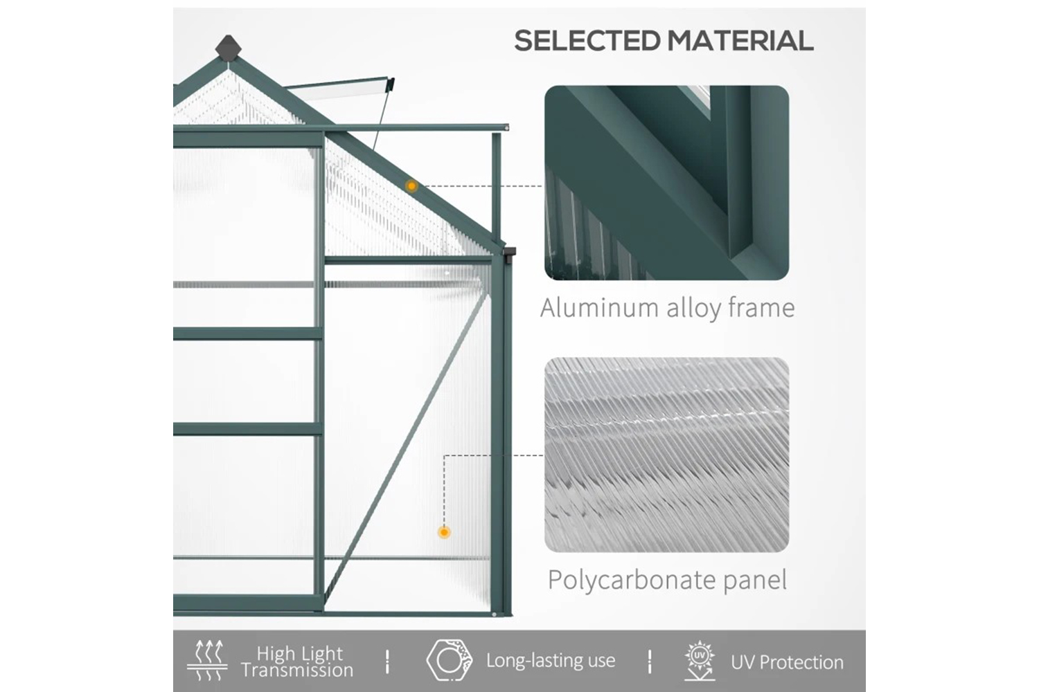 - Transparent polycarbonate panels for a safe indoor shelter, which allows sunlight to pass through for growth