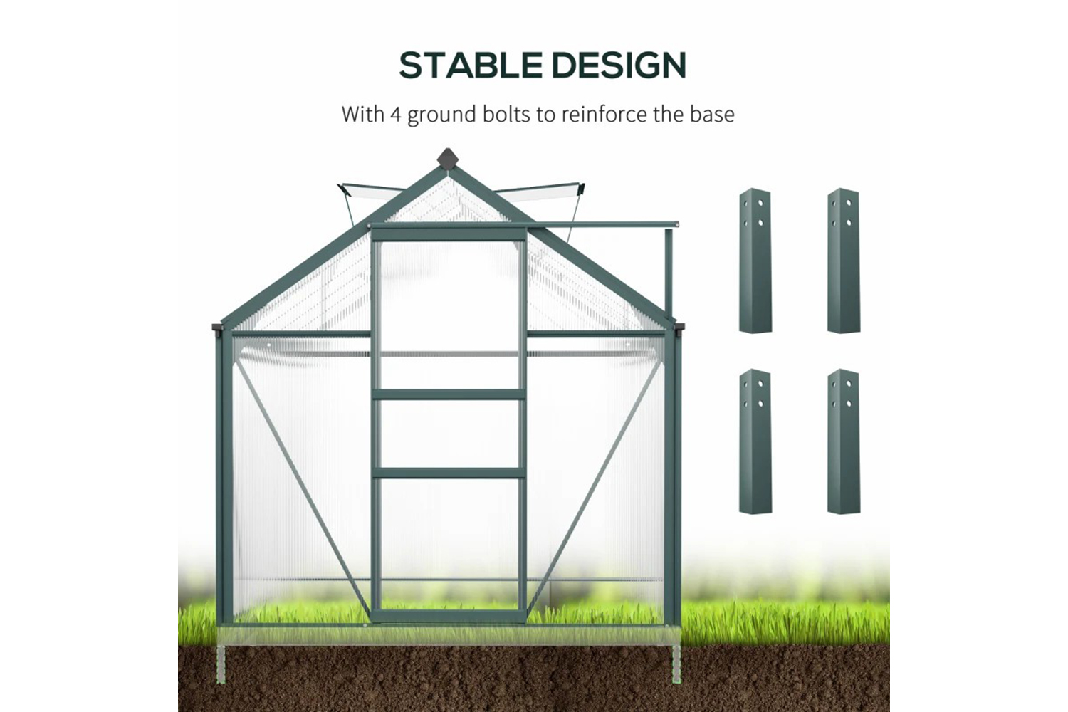 Start and continue the season right with this Outsunny 6ft x 10ft greenhouse. An open, walk-in design means it's easy to enter and leave, whilst giving you the full free space to set it up how you want. A powder-coated aluminium frame means a strong structure, with four ground stakes included to pin to the ground. Features a sliding door for easy access in and out, with a lift-up roof which holds in place - it's easy to let in fresh air, whenever you want.