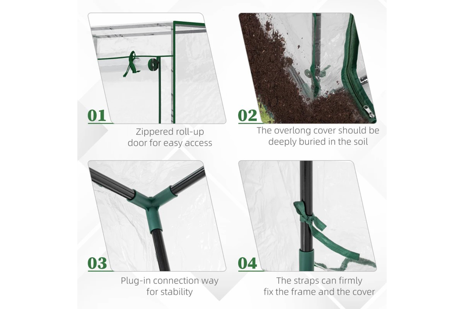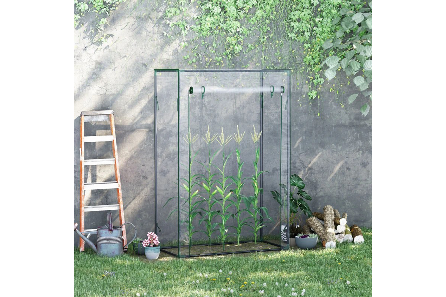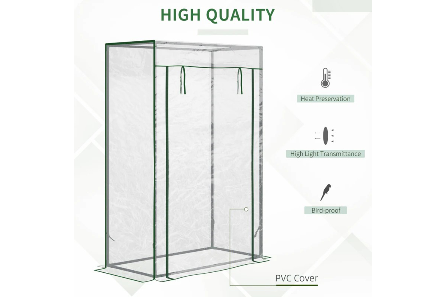 - Plastic cover to protect inside plants from mild wind and light rain, whilst allowing sunlight through for nourishment