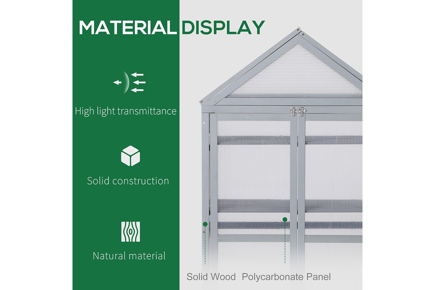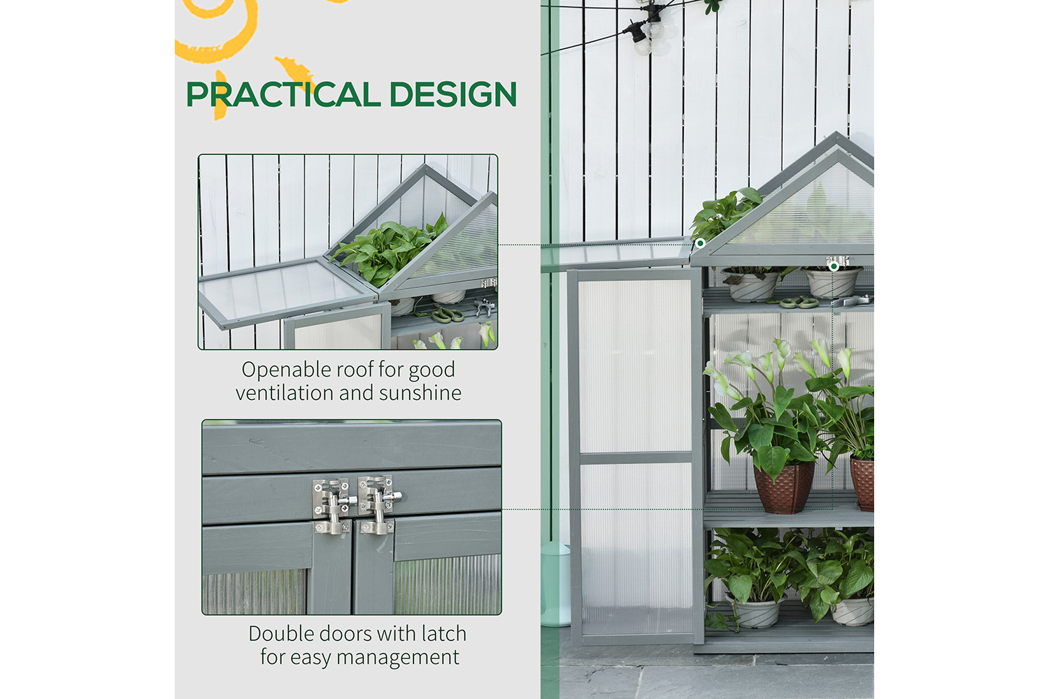 • Transparent polycarbonate boards with good light transmittance to let plants fully absorb sunlight