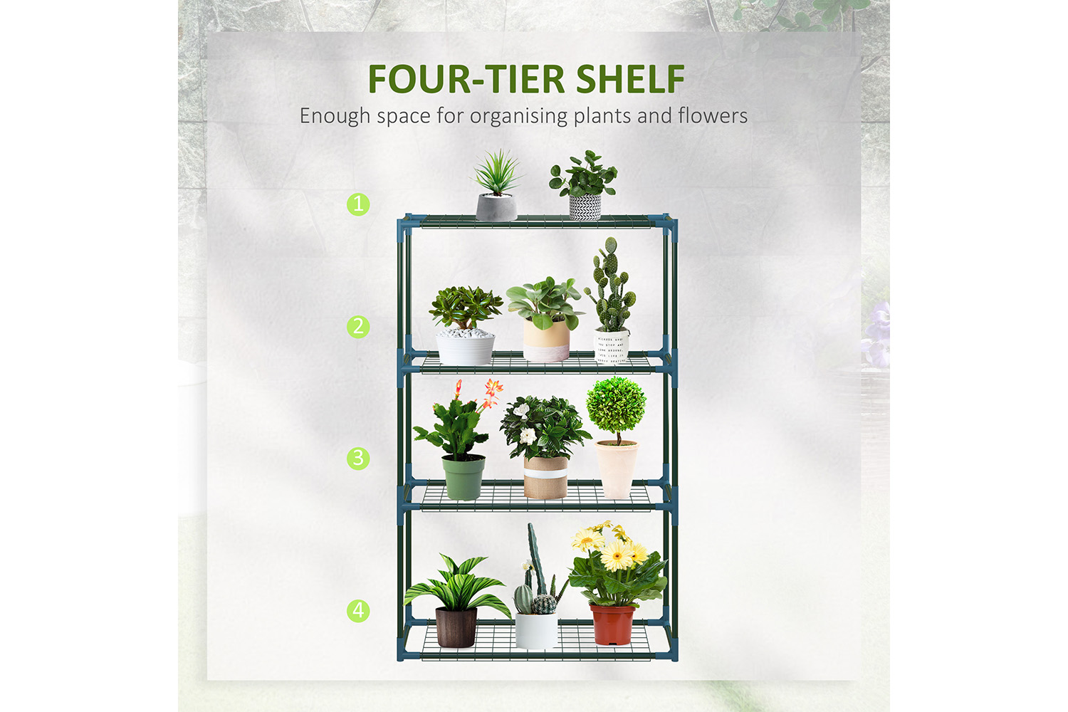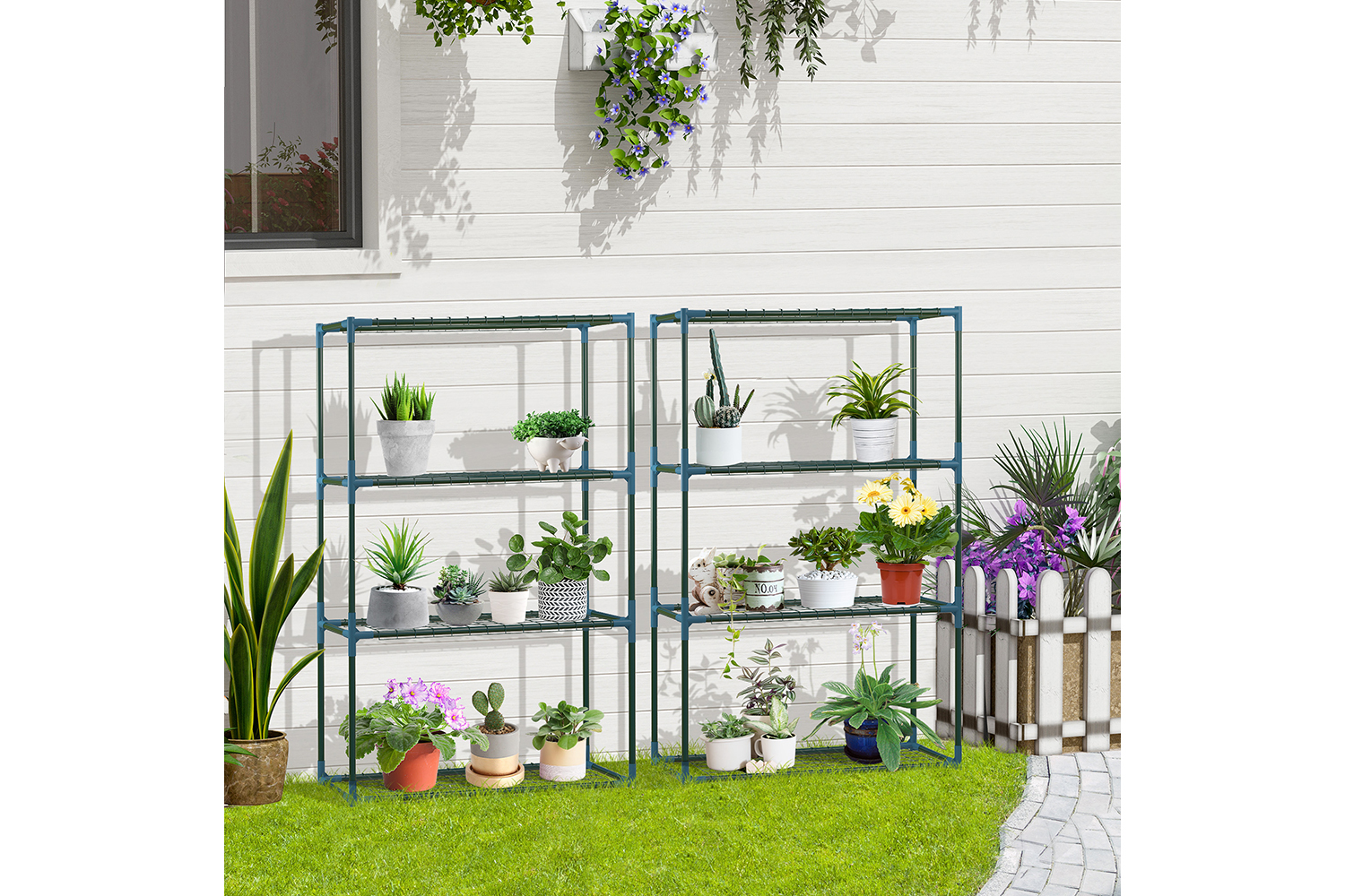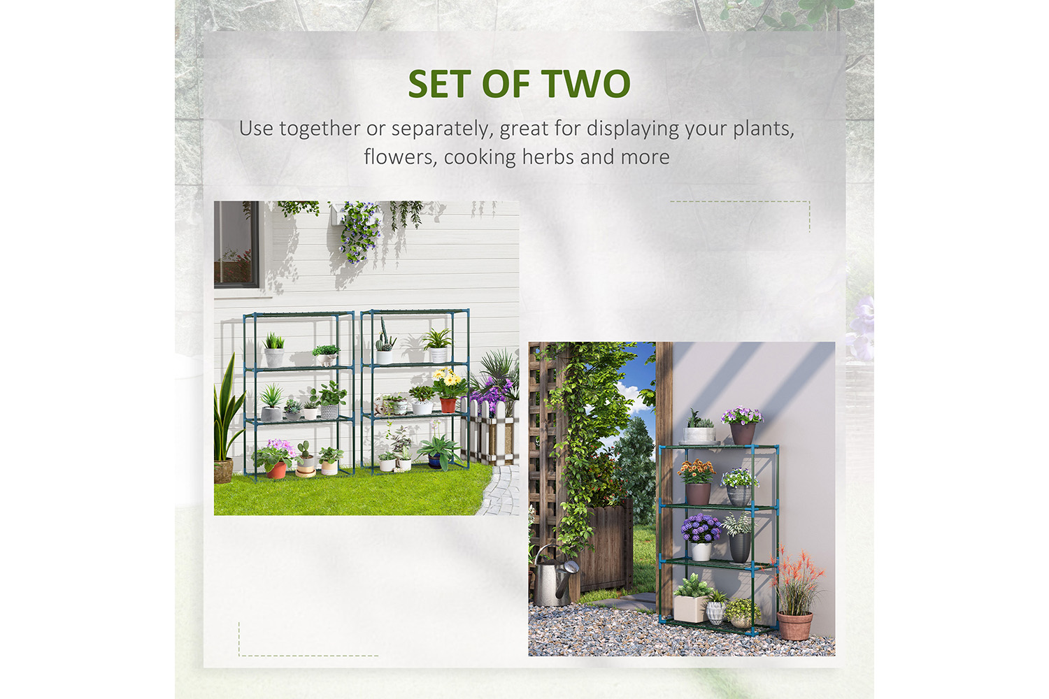 Add style and storage to your home with these two steel plant racks from Outsunny. This four-tiered plant rack is built with a sturdy steel frame for support. Four tiers on each piece give you plenty of room to display your plants, flowers - even books and ornaments. Made from metal, they are strong and will support their contents. Use together or separately - the choice is yours.