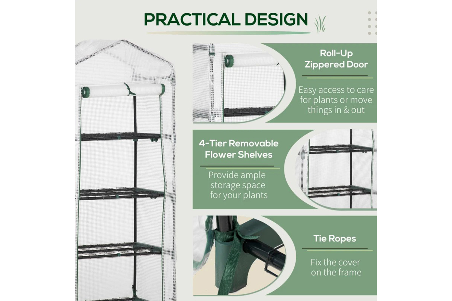 - Durable PE cover to allow sunlight to your plants, flowers and vegetables
