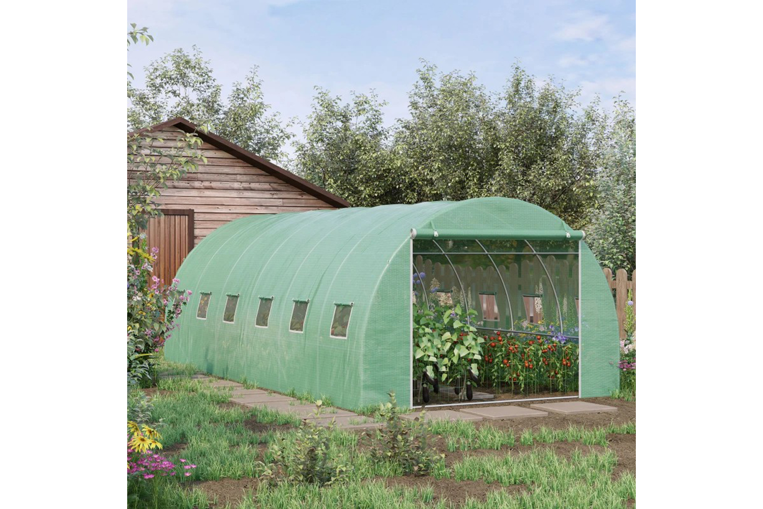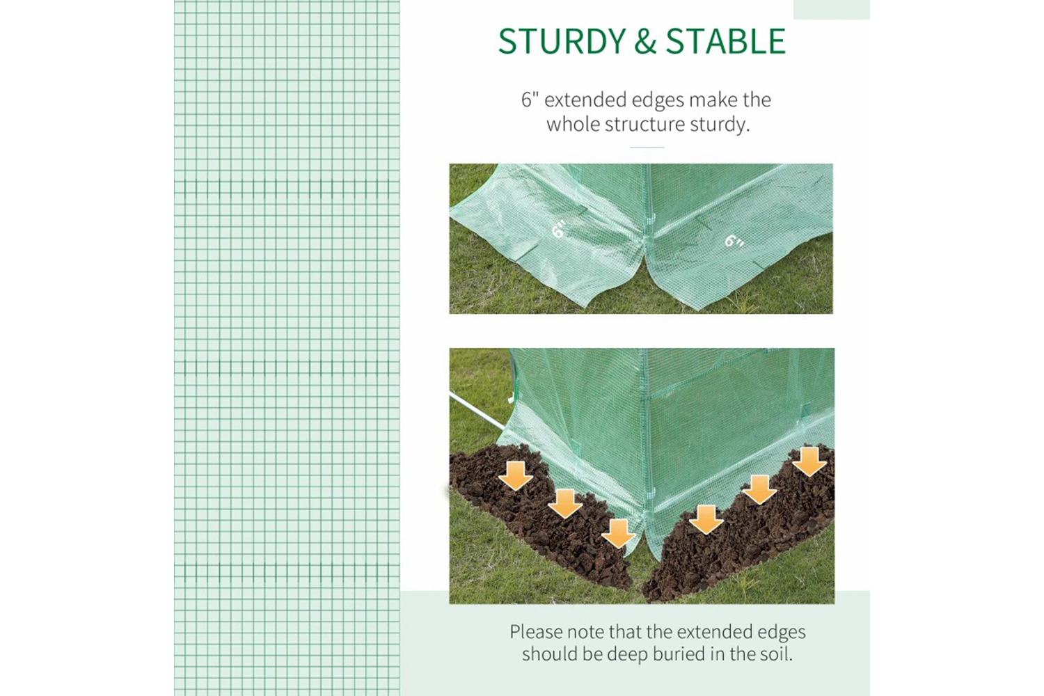 This Outsunny 6L x 3W x 1.9H M walk-in greenhouse tunnel is ideal for year-round gardening. Features a durable polyethylene covering with grid threading on a sturdy powder coated galvanized Metal frame for long-lasting use. A large zippered door makes for very easy getting in and out. Outsunny greenhouse is ideal for seeding, or just to protect your young plants from the cold weather. This greenhouse design brings the protective surroundings that you need, for a purpose-built greenhouse.