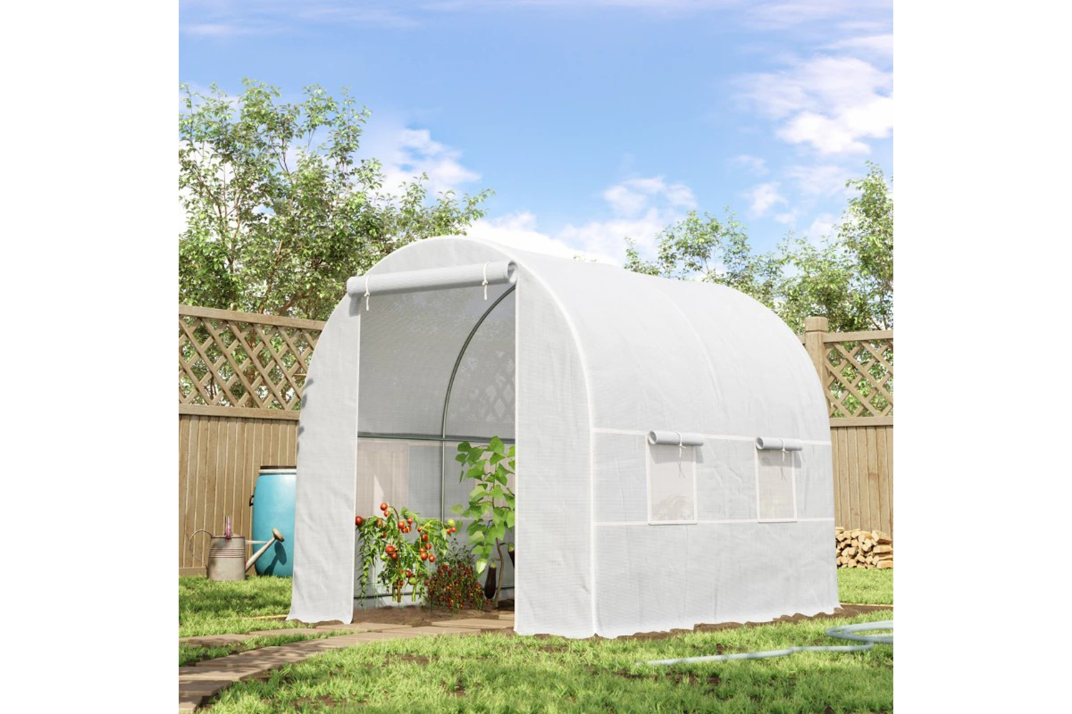 This Outsunny 2.5 x 2 x 2 m walk-in greenhouse is perfect for year-round gardening. Features a durable polyethylene covering and a sturdy metal frame for long-lasting use. A large double zippered door makes for very easy getting in and out. Outsunny greenhouse is great for seeding, or just to protect your young plants from the cold weather. This greenhouse design brings the protective surroundings that you need, without spending large amounts of money needed for a purpose built greenhouse.