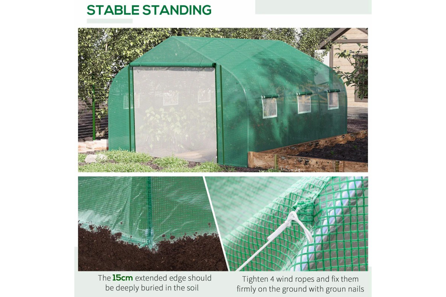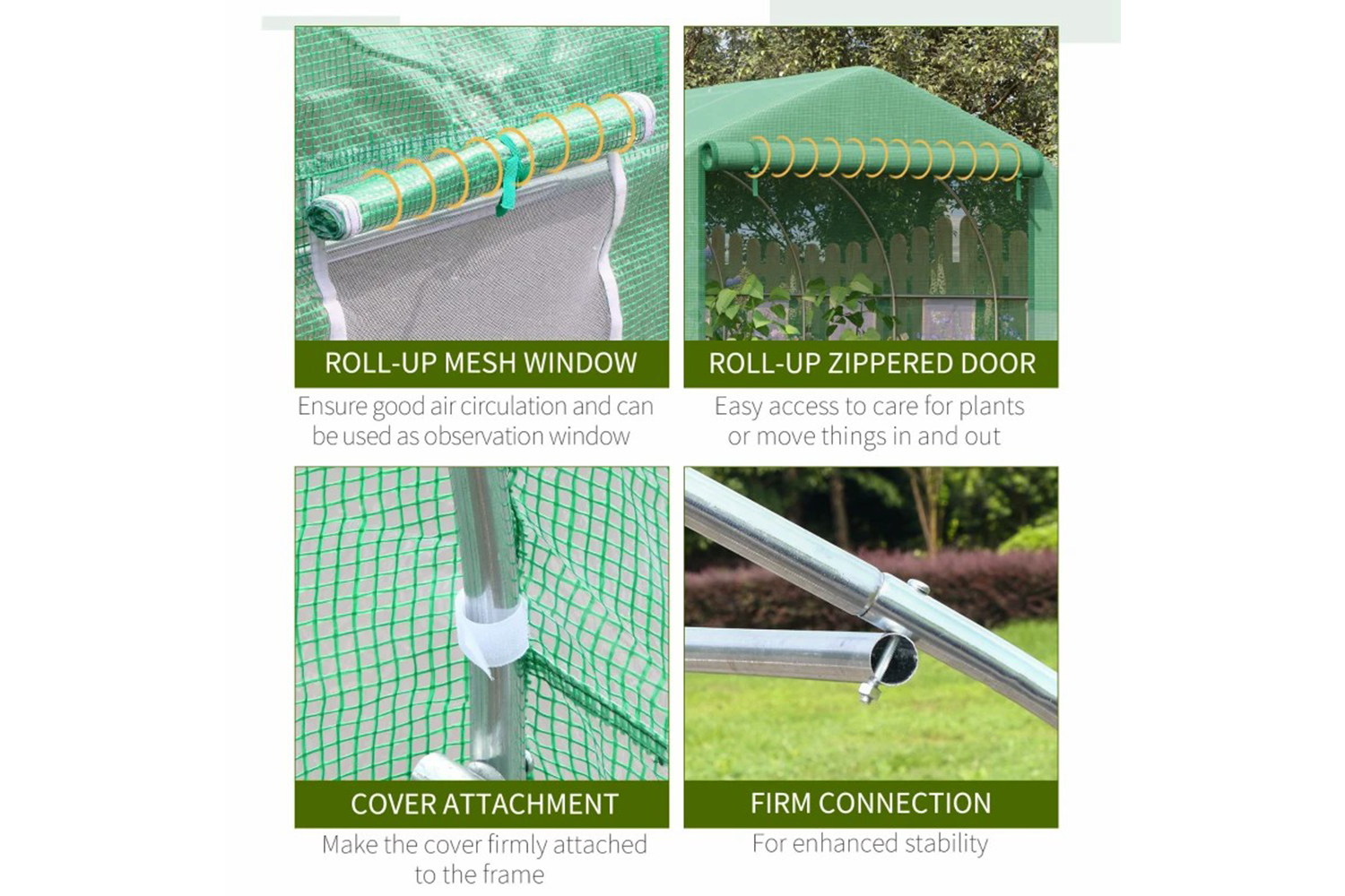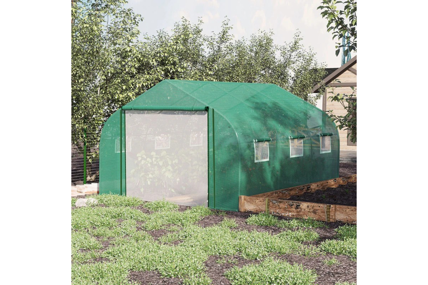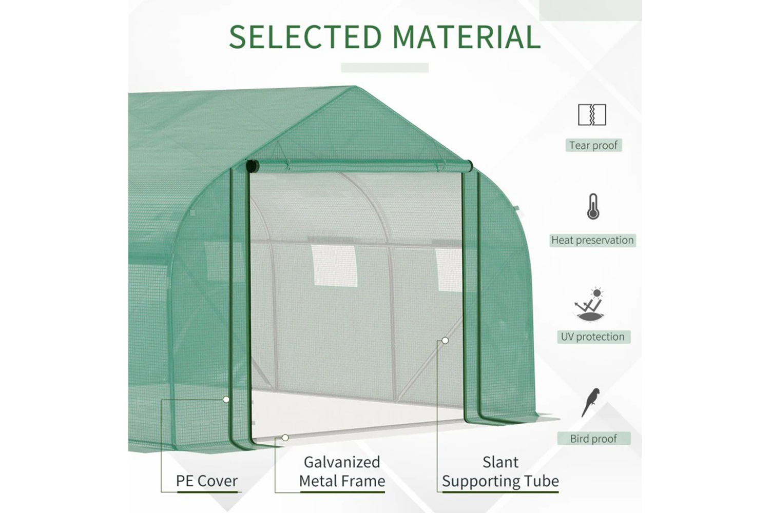This Outsunny 11x10ft plant greenhouse is perfect for every gardening enthusiast, who is looking for a way to stay in the soil all year round! The garden polytunnel greenhouse offers all the protection your plants need to thrive without having to spend a great deal of green yourself. The steel frame and PE cover create a safe, protective shelter for all your plants. The six windows, with netting, allow fresh air inside, whilst the roll-up door gives easy access.