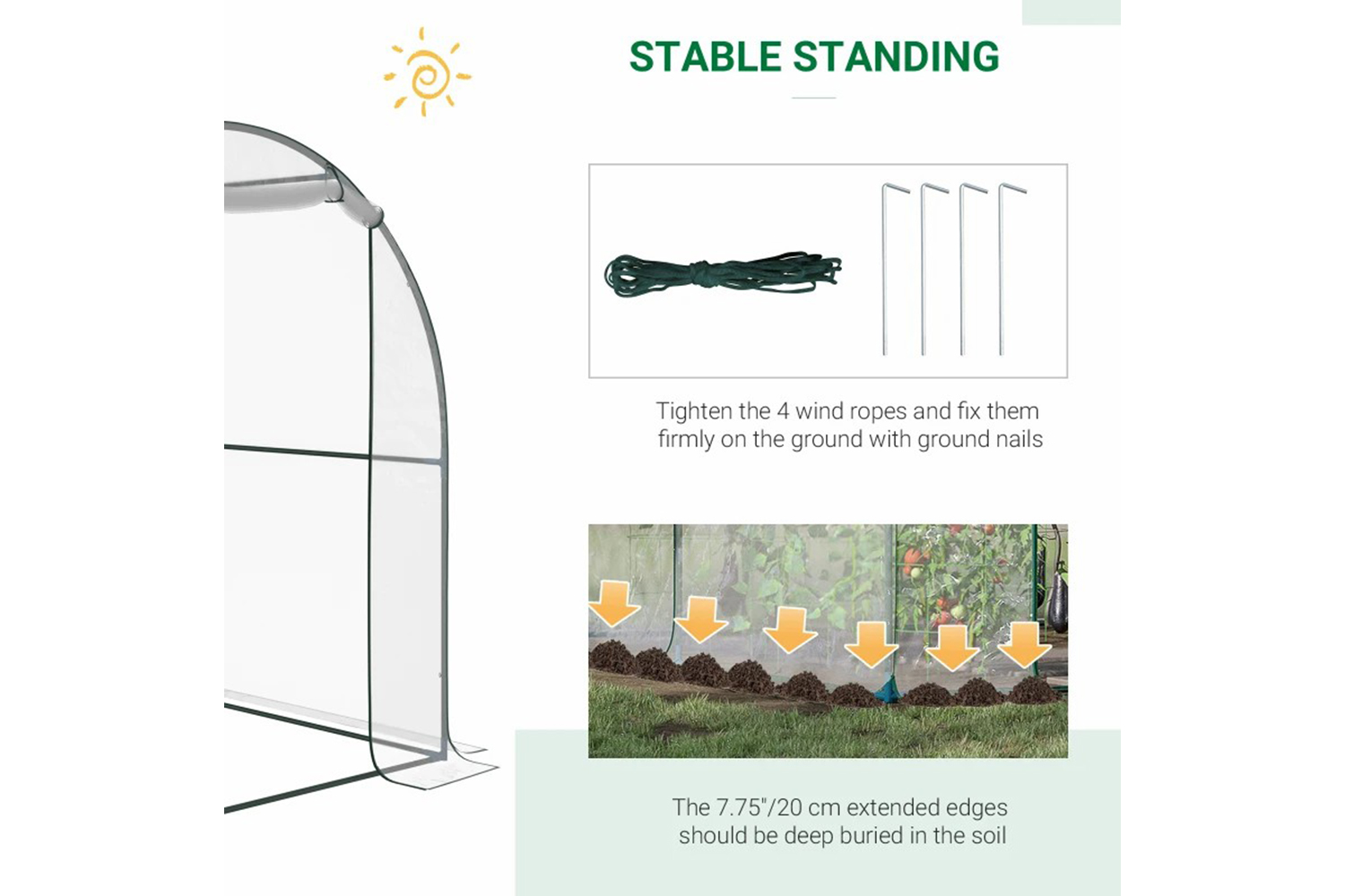 - At bottom, there is 20cm redundant cover for that soil can press on it to prevent storm and ensure obturation