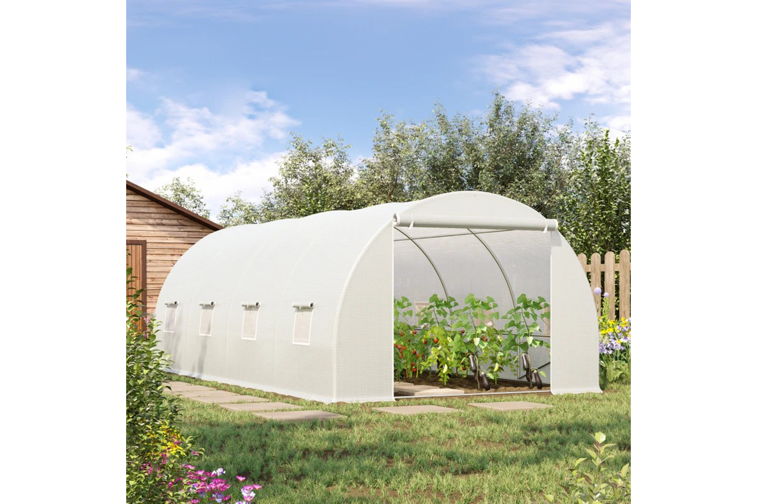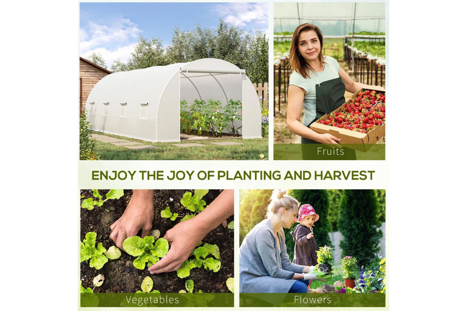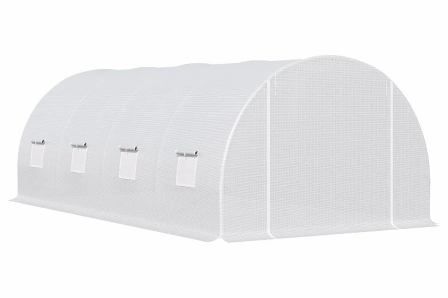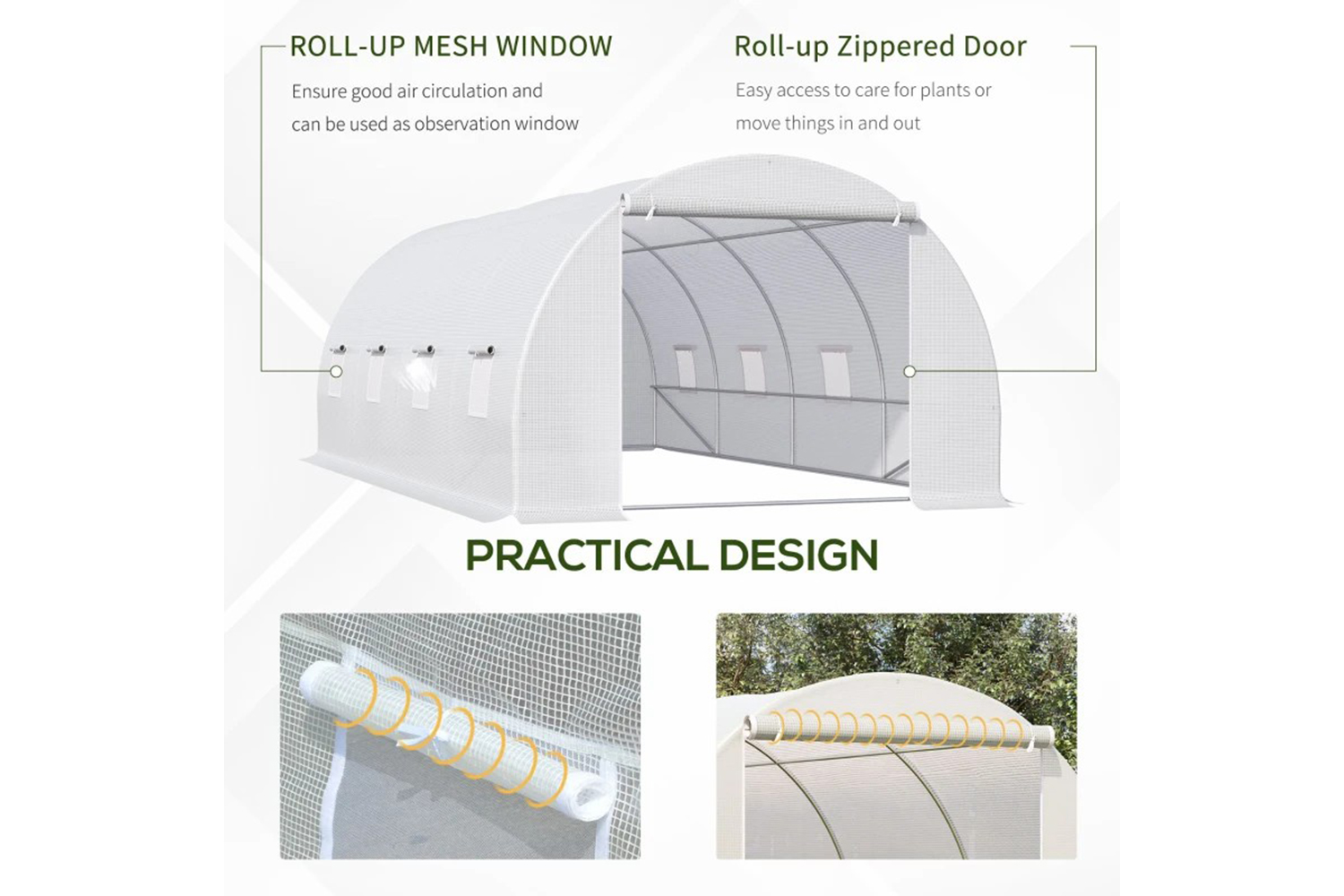 The spacious walk-in polytunnel greenhouse from Outsunny helps you create your very own indoor garden. Made from solid metal frame with PE cloth to protect your plants, fruits and vegetables against unsuitable weather. The green house for garden is created to provide desired temperature, humidity and sunlight to your plants. Roll up windows and zippered doors allow ease of access and optimum protection from birds and pests. Extend the planting time, enjoy the fun of planting for a long time.