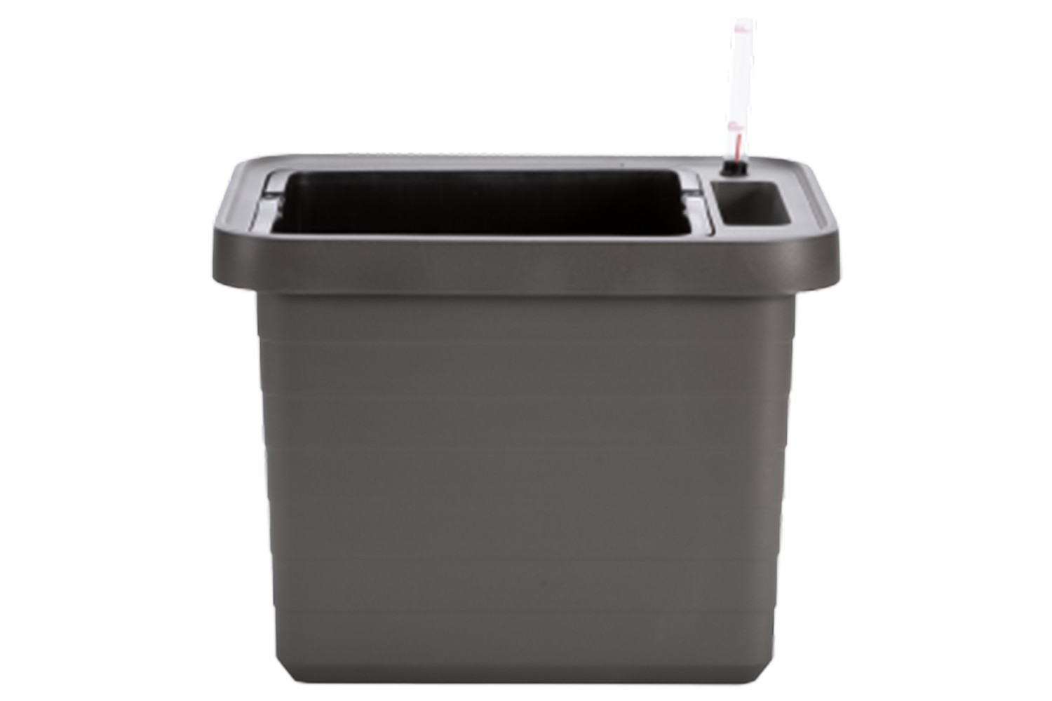 Large-volume planters with a self-watering system for growing herbs, flowers, and vegetables, suitable for terraces, balconies,and gardens. All variations are easy to handle - they come with wheels, the containers have handles as well as inlets for firmly affixing plant supports. Plant support is not included.