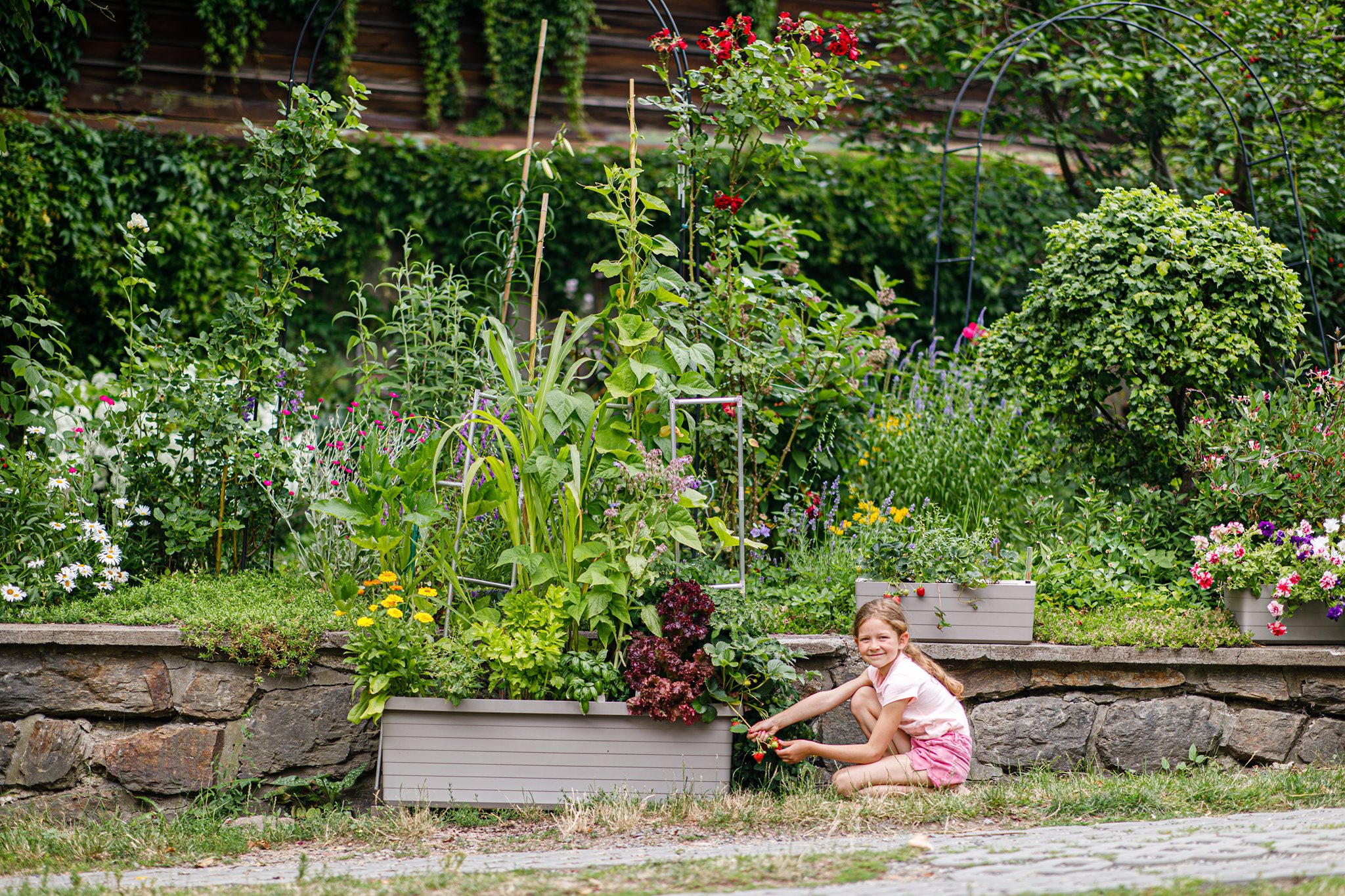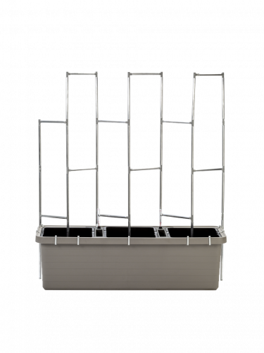 Large-volume planters with a self-watering system for growing herbs, flowers, and vegetables, suitable for terraces, balconies,and gardens. All variations are easy to handle - they come with wheels, the containers have handles as well as inlets for firmly affixing plant supports. Plant support is not included.
