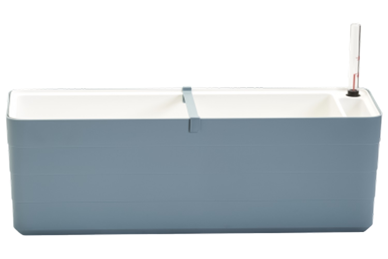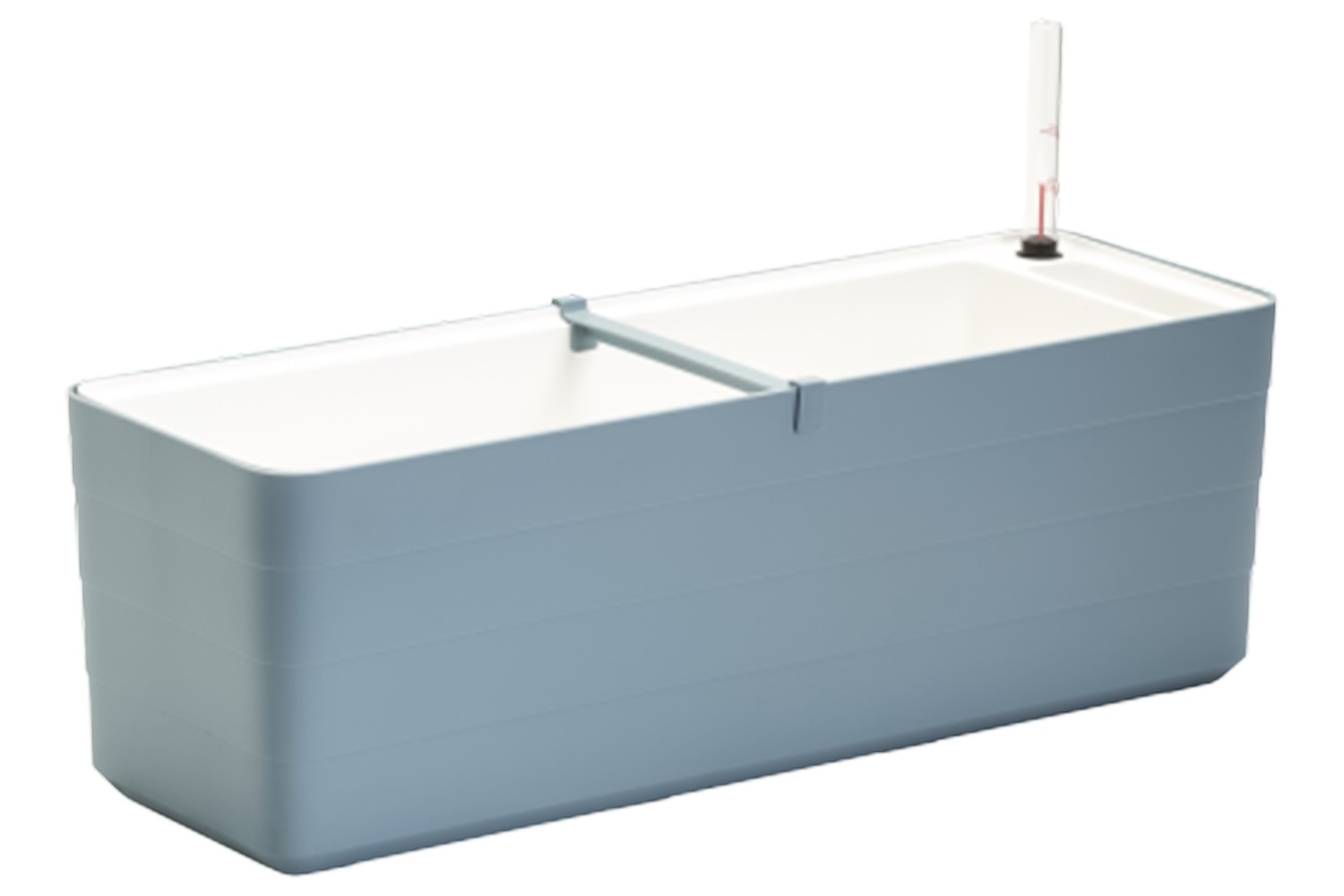 Elegant and playful. A self-watering flower box designed by the young Czech designers of the WRKS studio. Especially useful for growing vegetables, flowers, and herbs. A great fit for windows, terraces, or railings. 6 color variations. With a colorful self-watering insert. Practical metal holders can be purchased to secure the box to the balcony or fence railing.