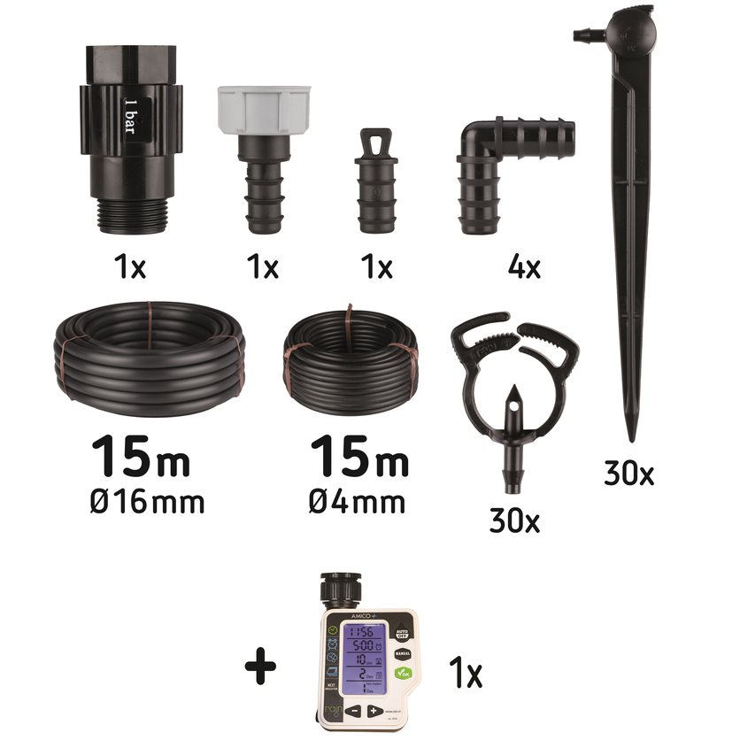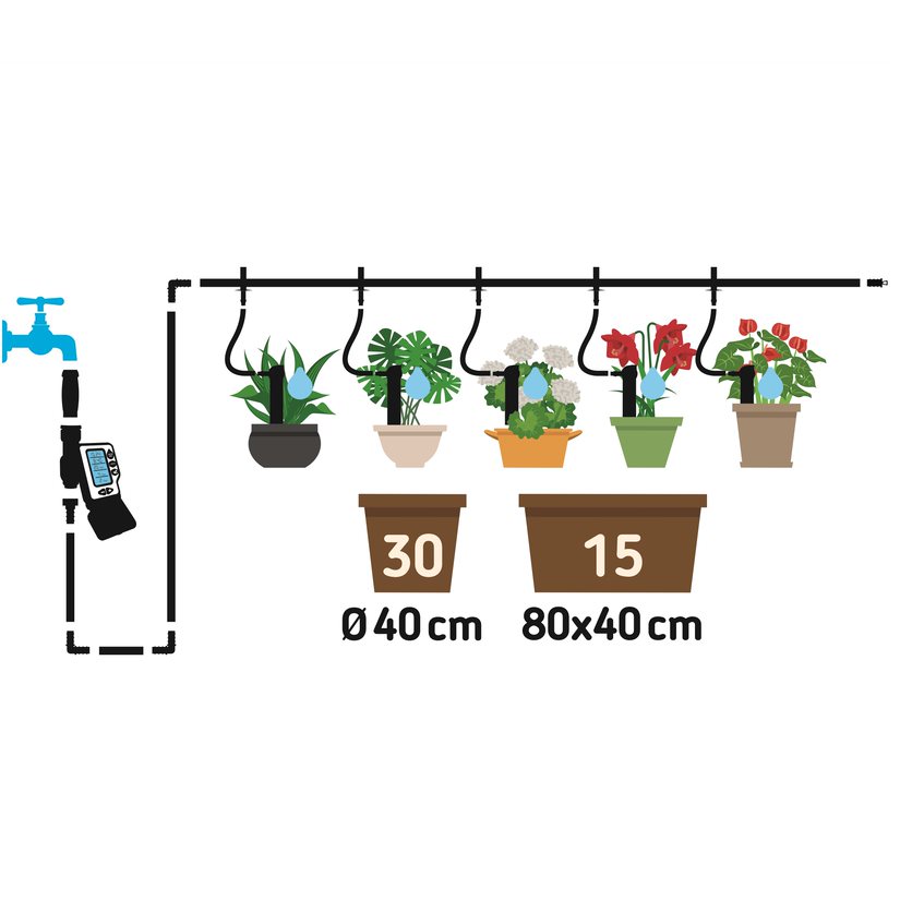 needed. That's great for your garden and good for the environment too. Your garden will be more sustainable. With the battery operated controller you can set when the plants are to be watered and the length of watering. Less work