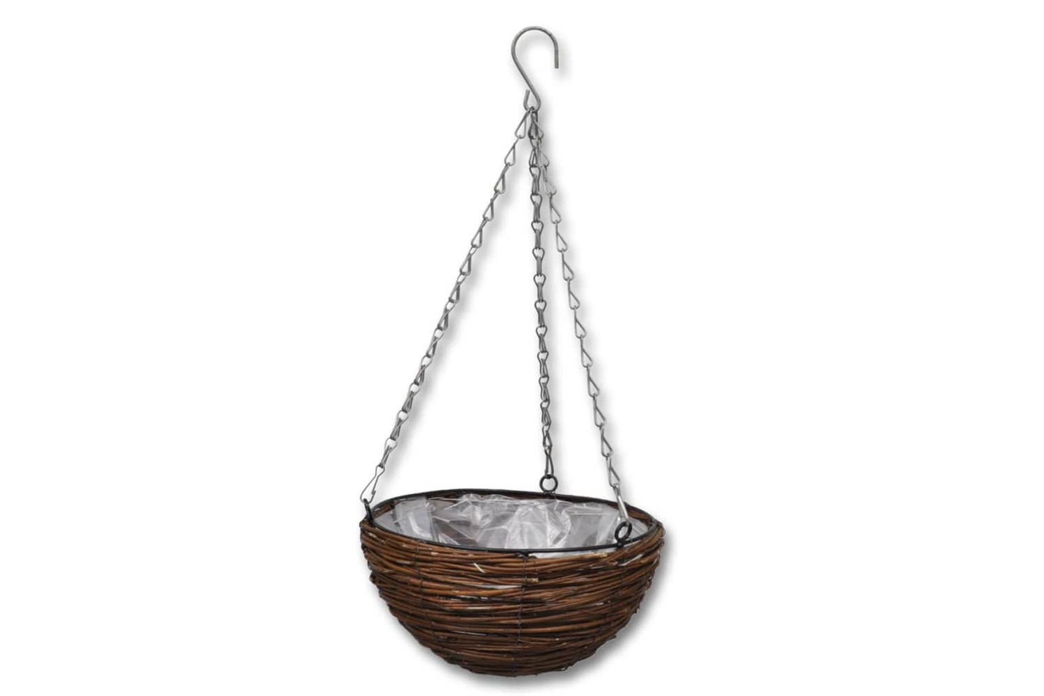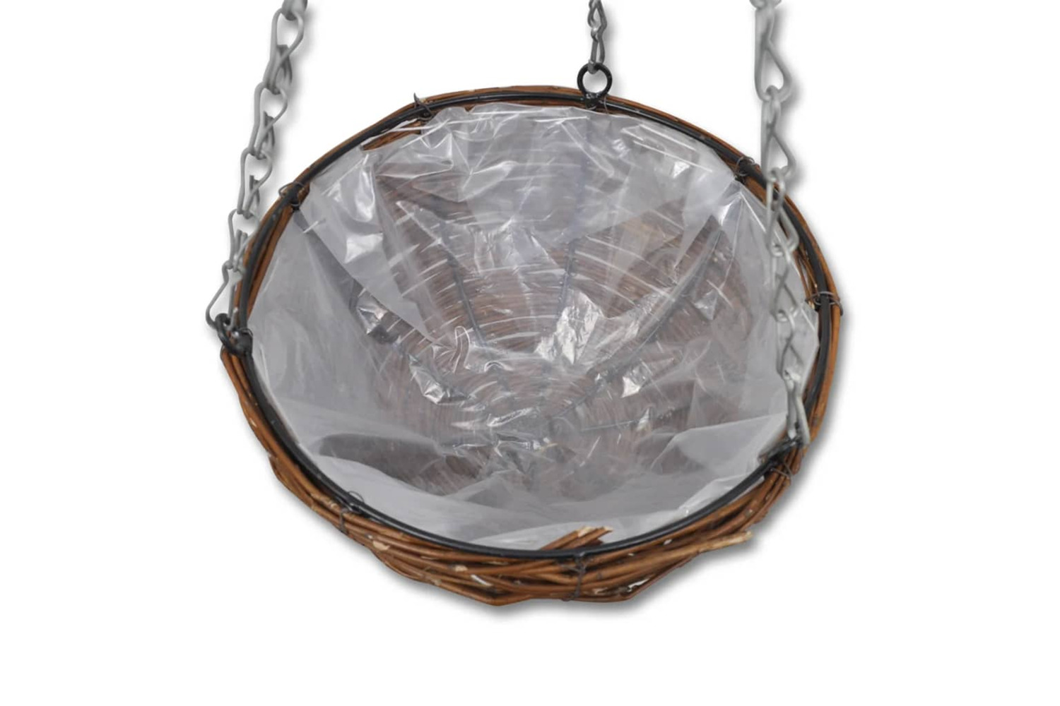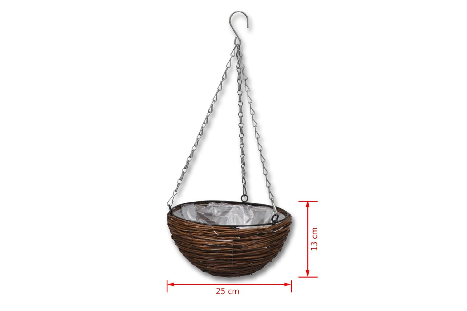 - Complete with plastic liner & hanging chain