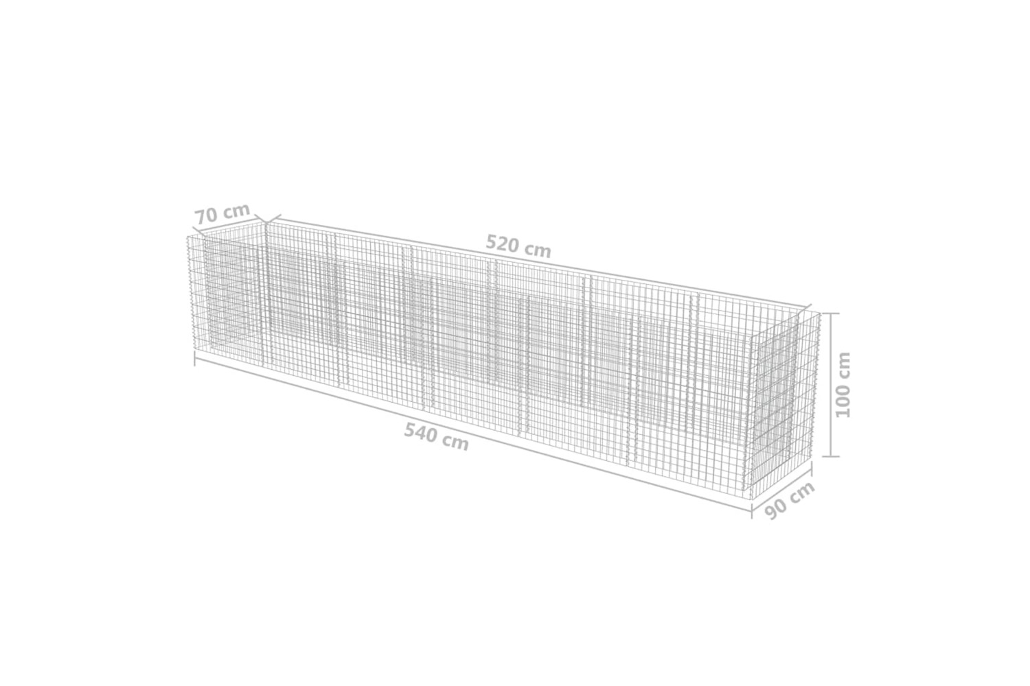 The sturdy gabion has been designed to be filled with rocks or gravel. Made of rustproof and weather-resistant galvanised steel, the raised garden bed is very stable and durable. The mesh grid is built by welding transverse and longitudinal wires at every intersection for extra stability.