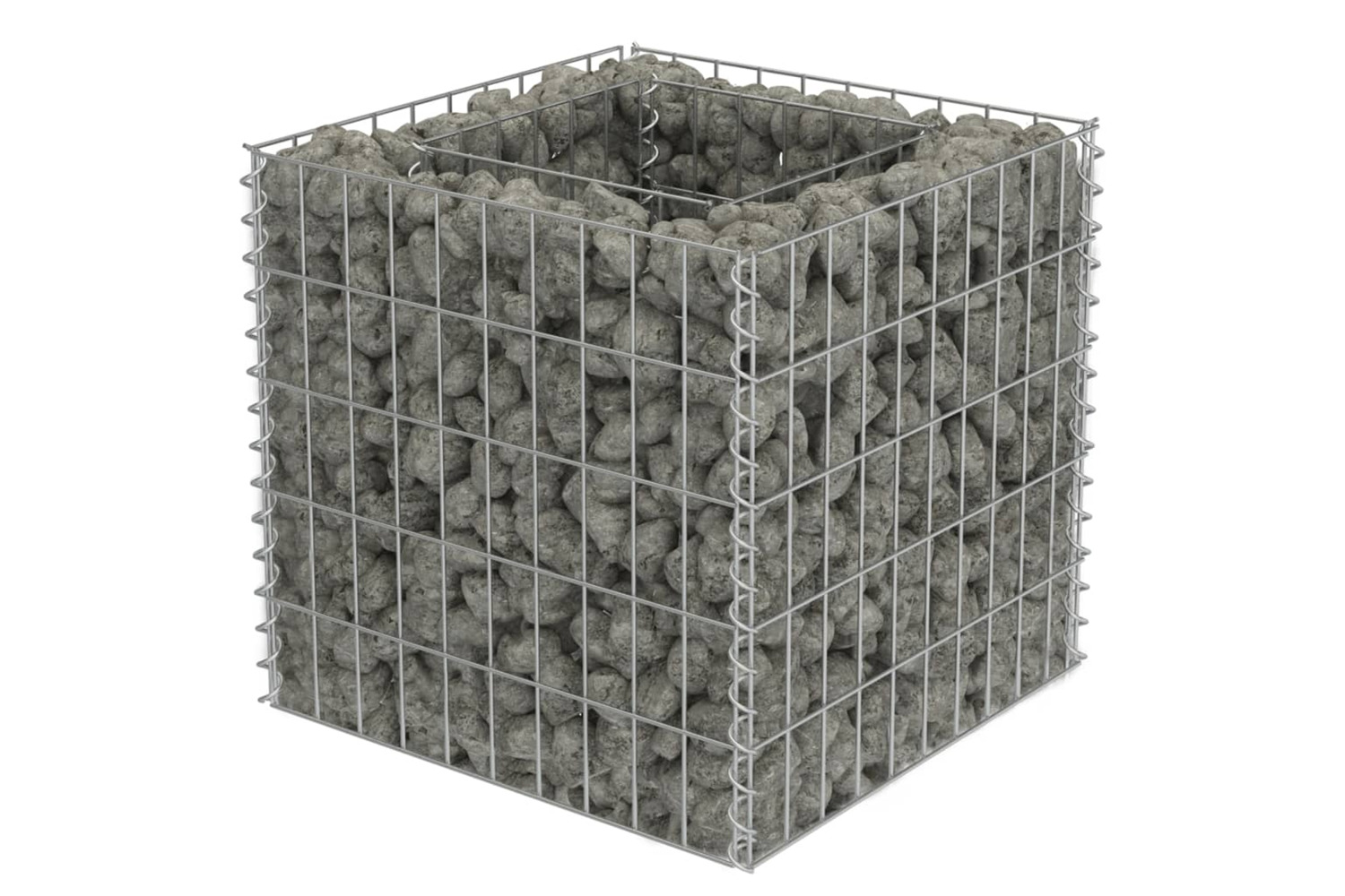 The sturdy gabion has been designed to be filled with rocks or gravel. Made of rustproof and weather-resistant galvanised steel, the raised garden bed is very stable and durable. The mesh grid is built by welding transverse and longitudinal wires at every intersection for extra stability.