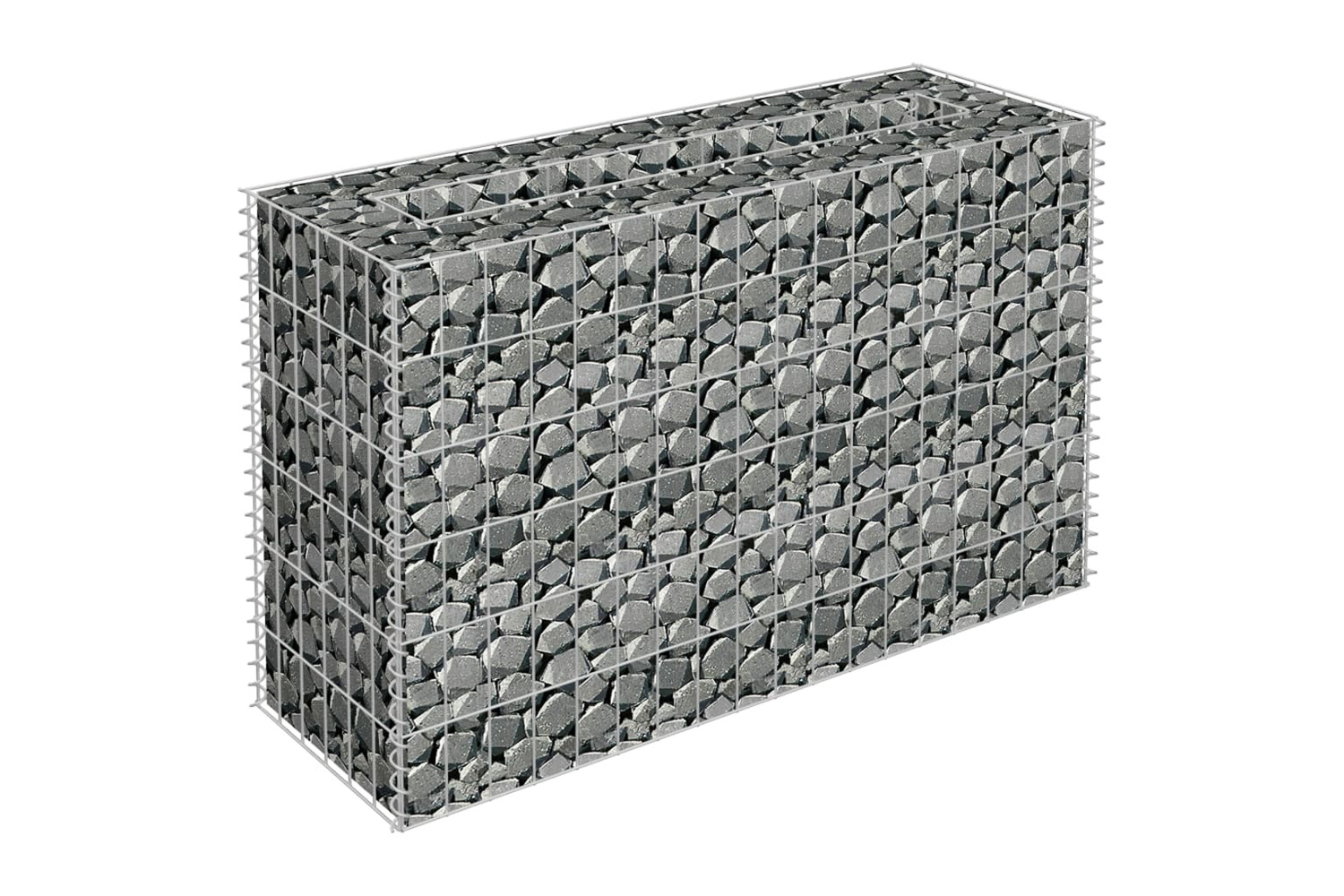 The sturdy gabion is designed to be filled with rocks or gravel. Made of rustproof and weather-resistant galvanised steel, the gabion is very stable and durable. The transverse and longitudinal wires welded at every intersection offers extra stability to the gabion planter and also works as a mesh grid.