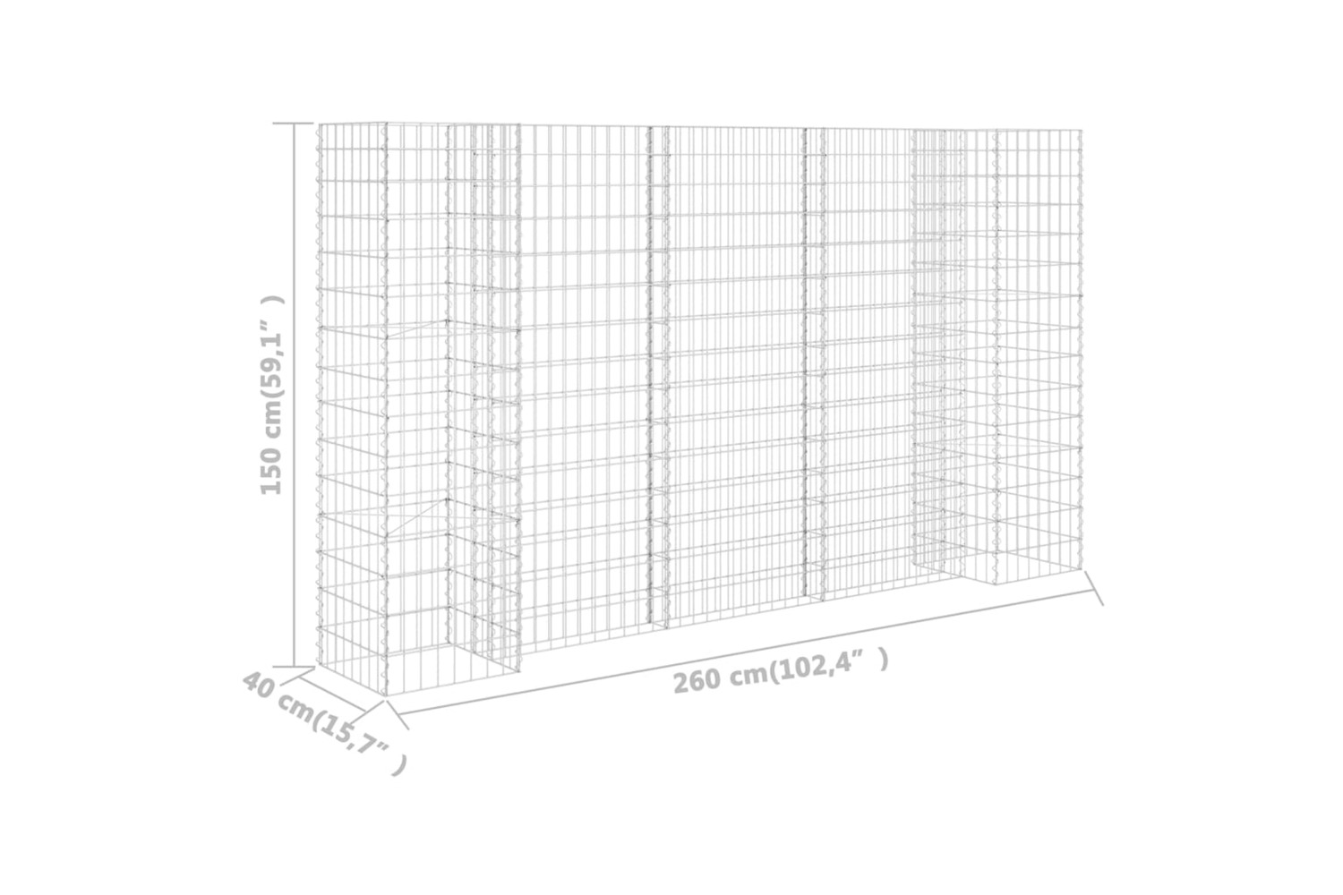 The sturdy gabion is designed to be filled with rocks or gravel. Made of rustproof and weather-resistant steel wire, the gabion is very stable and durable. The transverse and longitudinal wires welded at every intersection offers extra stability to the gabion planter and also works as a mesh grid.
