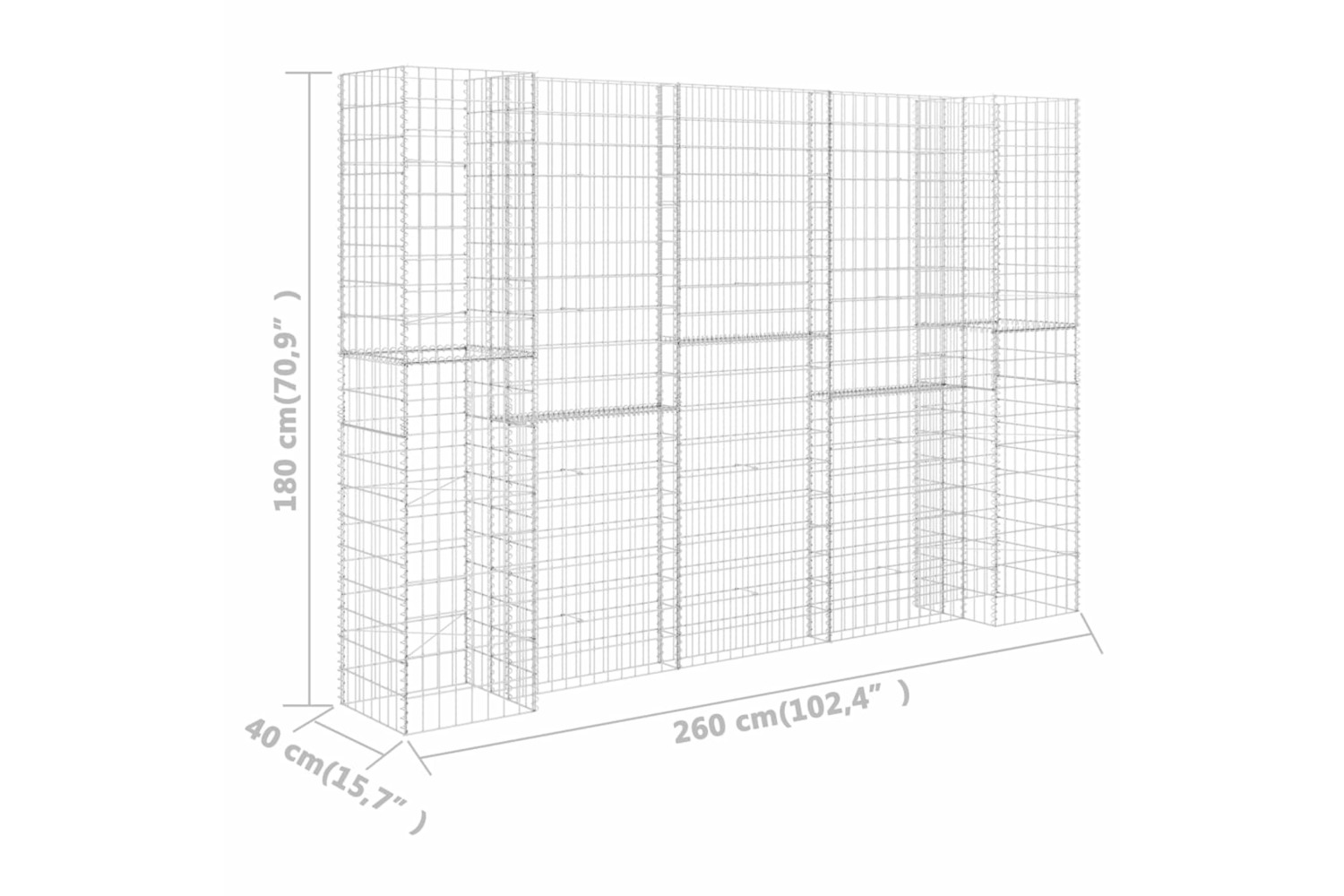 The sturdy gabion is designed to be filled with rocks or gravel. Made of rustproof and weather-resistant steel wire, the gabion is very stable and durable. The transverse and longitudinal wires welded at every intersection offers extra stability to the gabion planter and also works as a mesh grid.