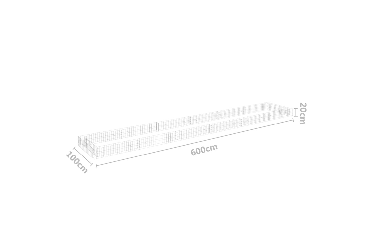 - Outer dimensions: 600 x 100 x 20 cm (L x W x H)