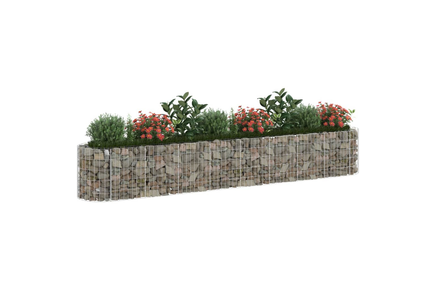 This gabion raised bed is a convenient way of creating a strong border for the flowers in your garden and patio.