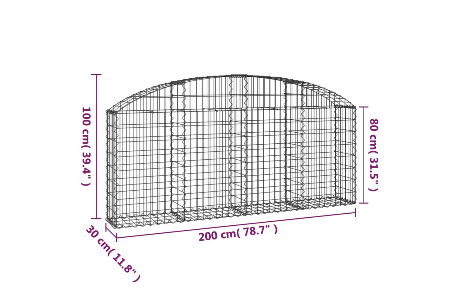 vidaXL 153464 Arched Gabion Basket 200x30x80/100cm Galvanised Iron