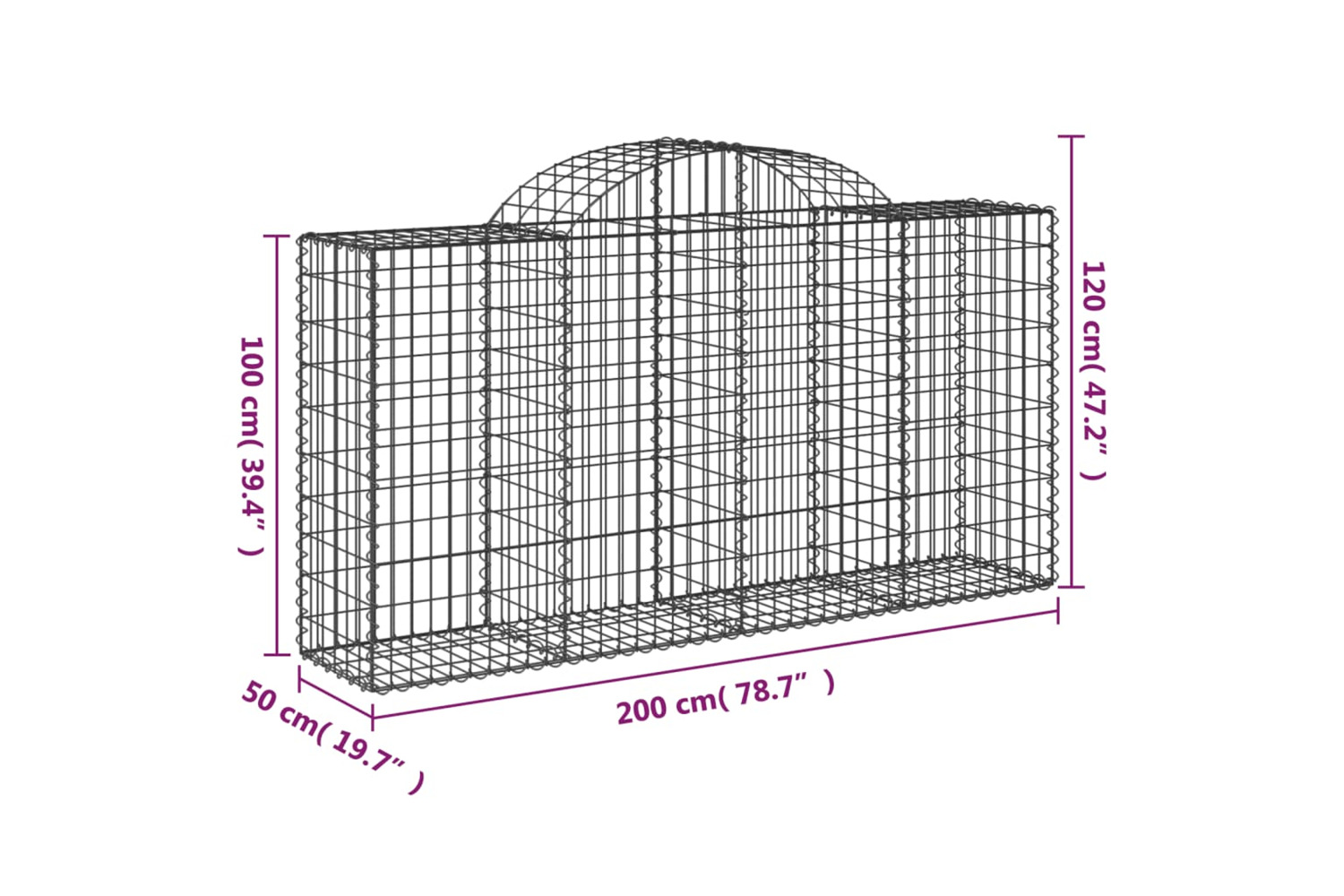 vidaXL 153495 Arched Gabion Basket 200x50x100/120cm Galvanised Iron