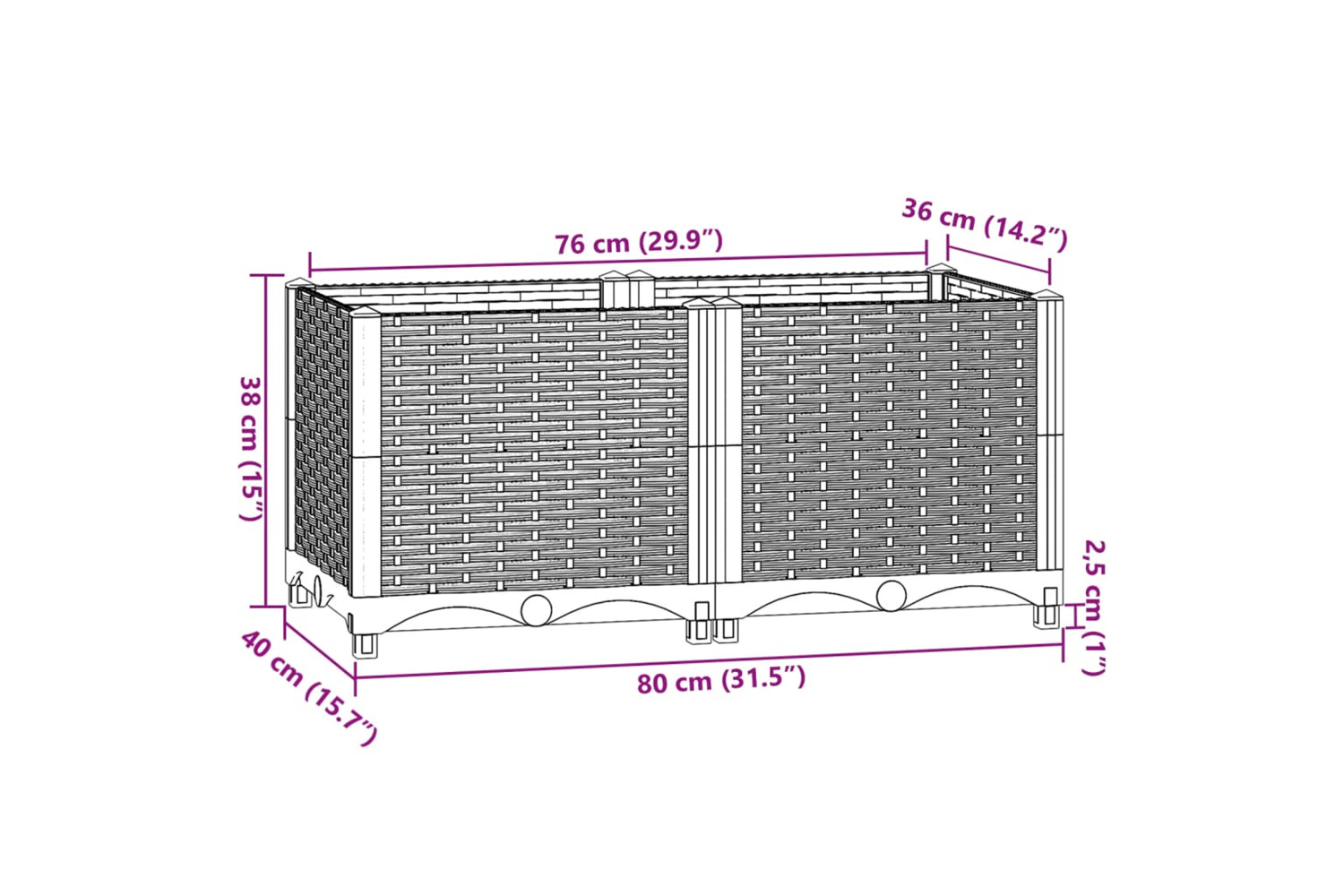 This planter is made of polypropylene, making it sturdy, hard-wearing and suitable for daily outdoor use. The garden pot is deep and wide enough to hold a large amount of soil and provides ample space for your plants, vegetables, herbs and flowers. Create a lovely backdrop for your plants with this elegant planting bed!