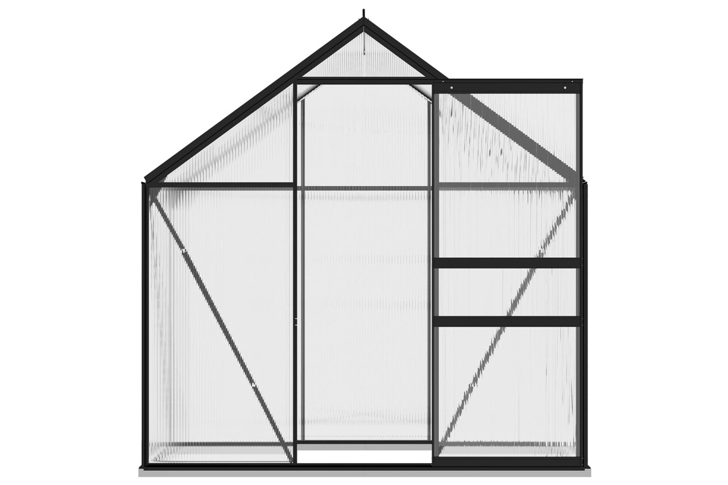 This greenhouse, made of polycarbonate panels, is UV resistant and thermally insulated. The greenhouse has sturdy and maintenance-free aluminium construction for extra stability. The groove system effectively allows water drainage, and the roof vent ensures optimal ventilation on hot days.