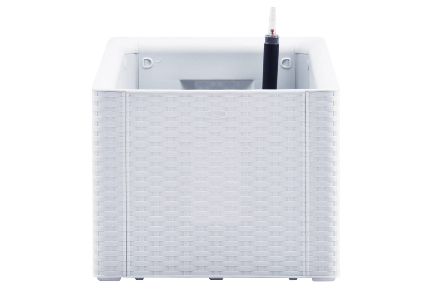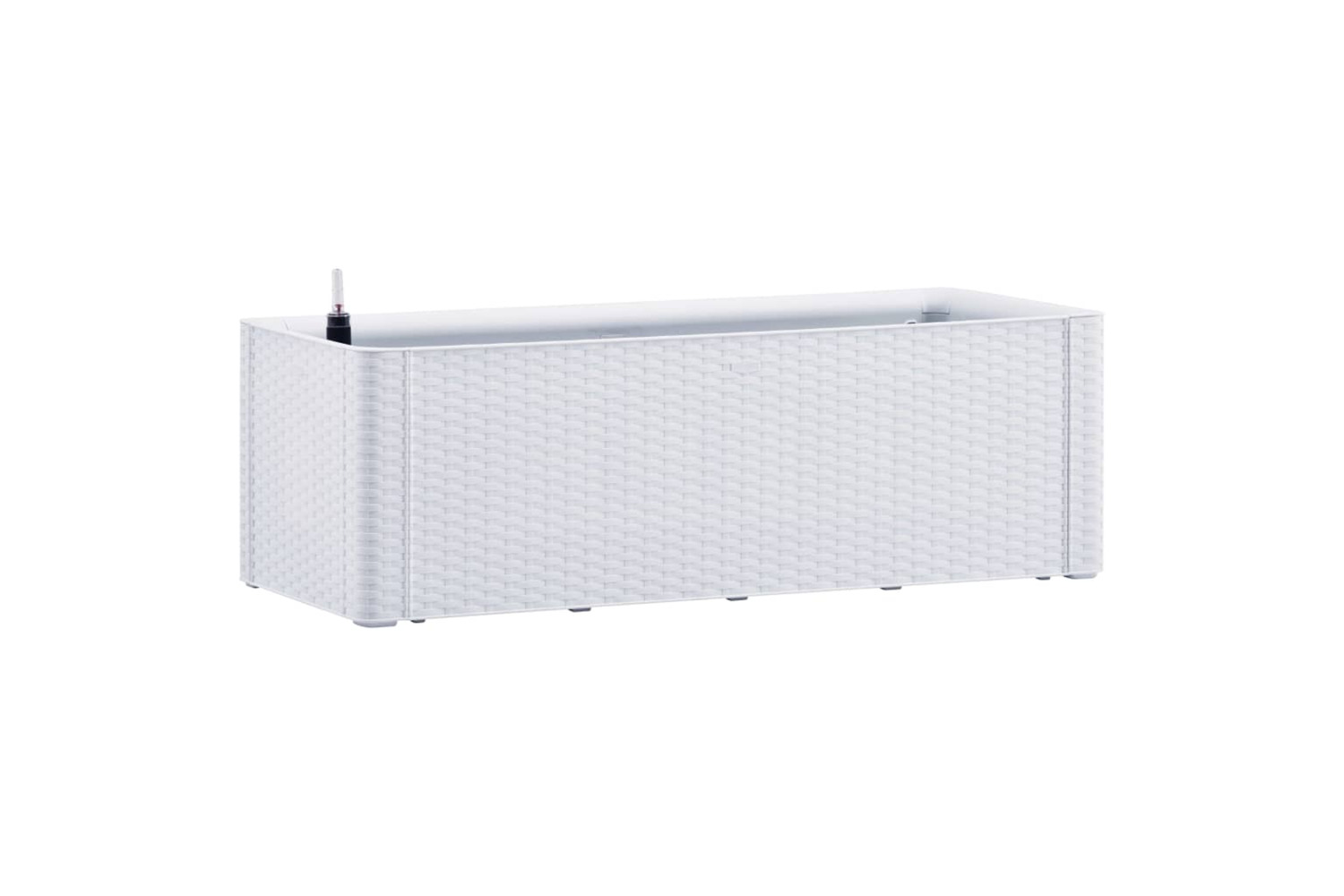 This garden planter, crafted of robust UV, weather and frost resistant PP (polypropylene), is suitable for indoor and outdoor use. The design resembles a real rattan structure. This flower box can accommodate a large number of green plants and flowers. Additionally, the planting bed features a self-watering system and level indicator to prevent overwatering.