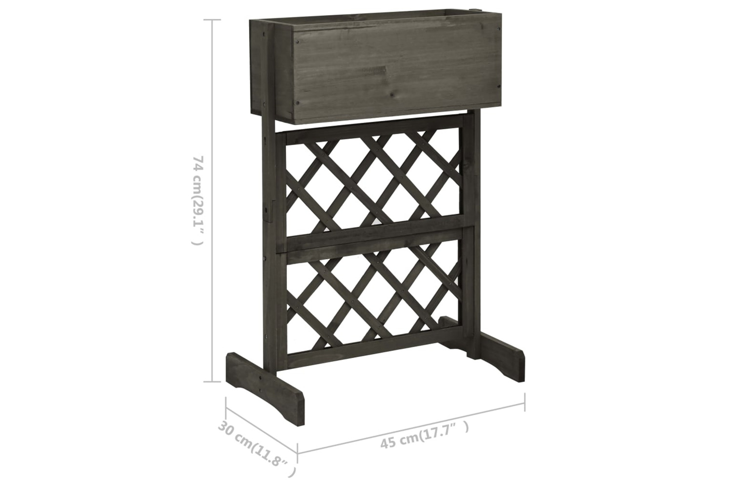 This trellis planter, made of solid firwood, is sturdy and suitable for outdoor use. The garden planter has a flower box to accommodate a large number of green plants and flowers. Additionally, the flower box is situated at an ideal working height, making planting easier on your back and knees and reduces fatigue. The trellis between legs offers excellent support for climbing plants.