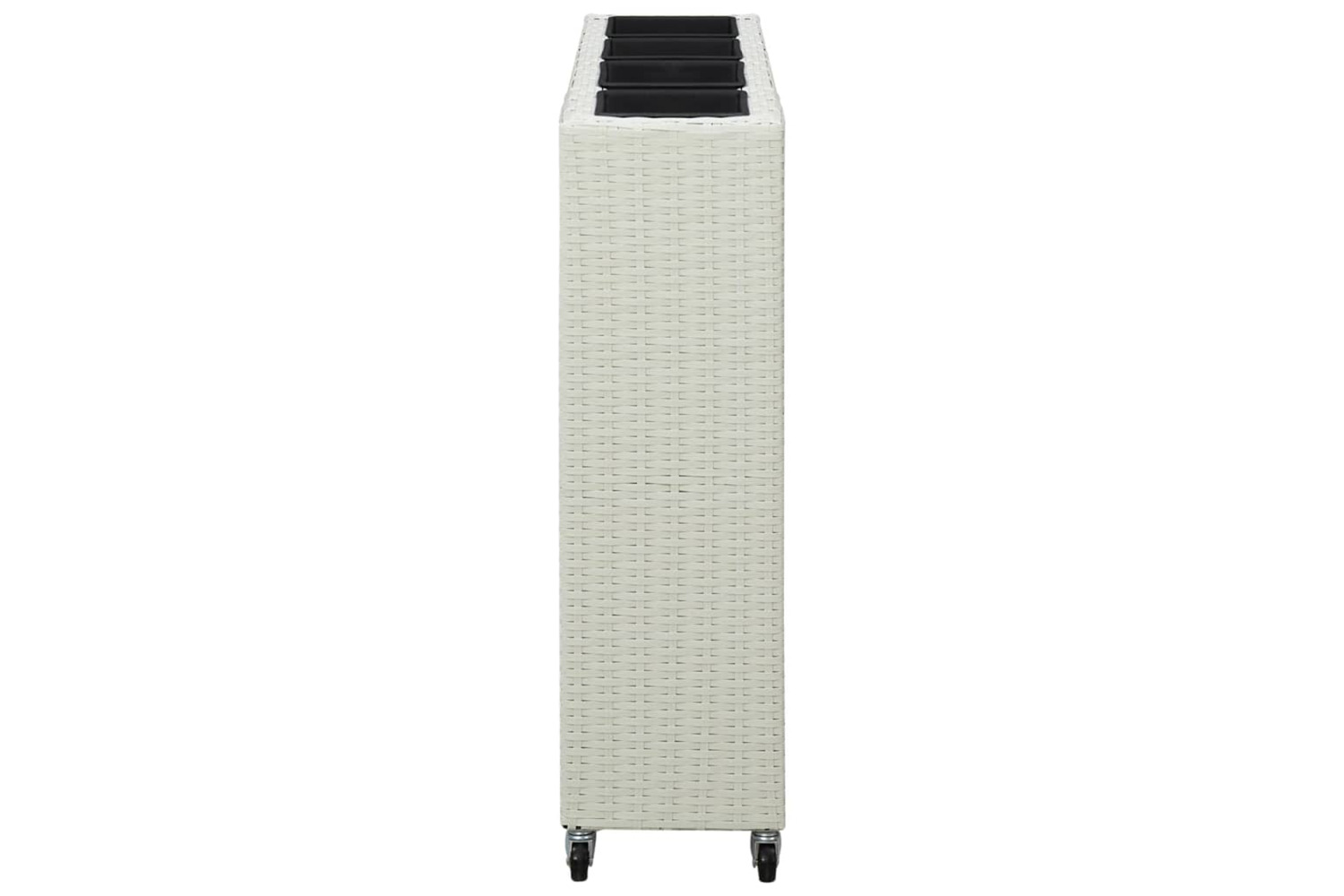 Made of durable water-resistant poly rattan, this planter is a perfect addition to your outdoor space. Its tight weaving structure produces a smooth finish and excellent stability. With 4 pots, you can plant all kinds of lively green plants and flowers in it. Additionally, the design of 4 wheels brings convenience. Get ready to decor your garden, terrace and balcony with our beautiful planters!