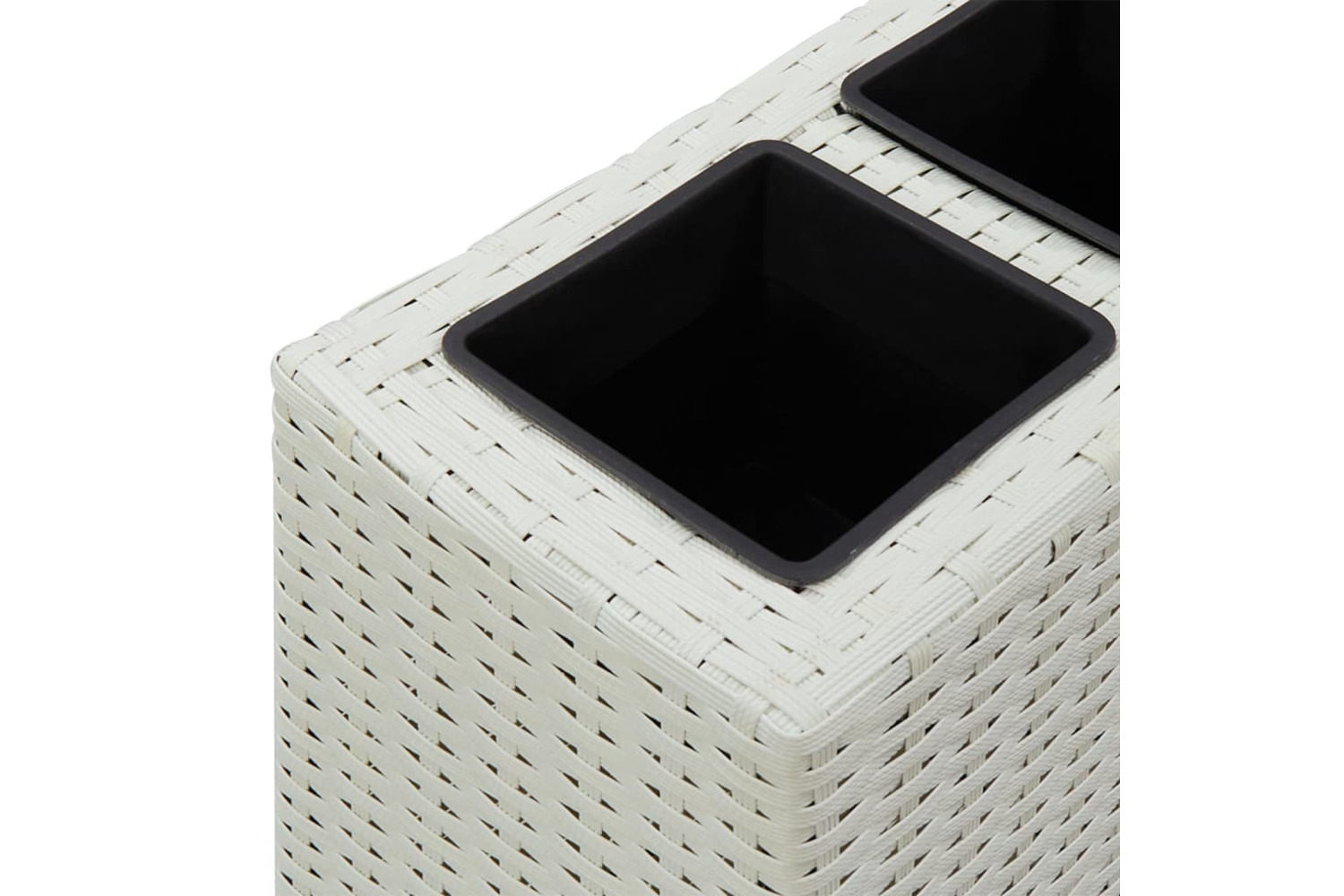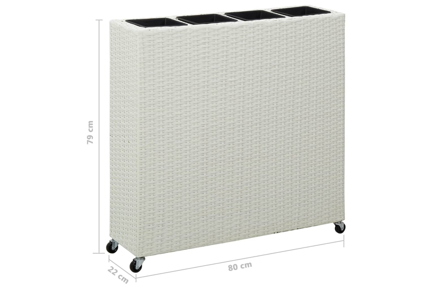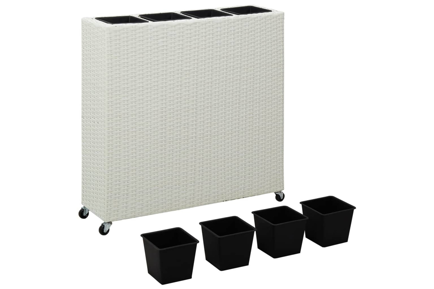 This lovely garden raised bed set consists of 1 poly rattan planter, 4 plastic pots and 4 wheels.