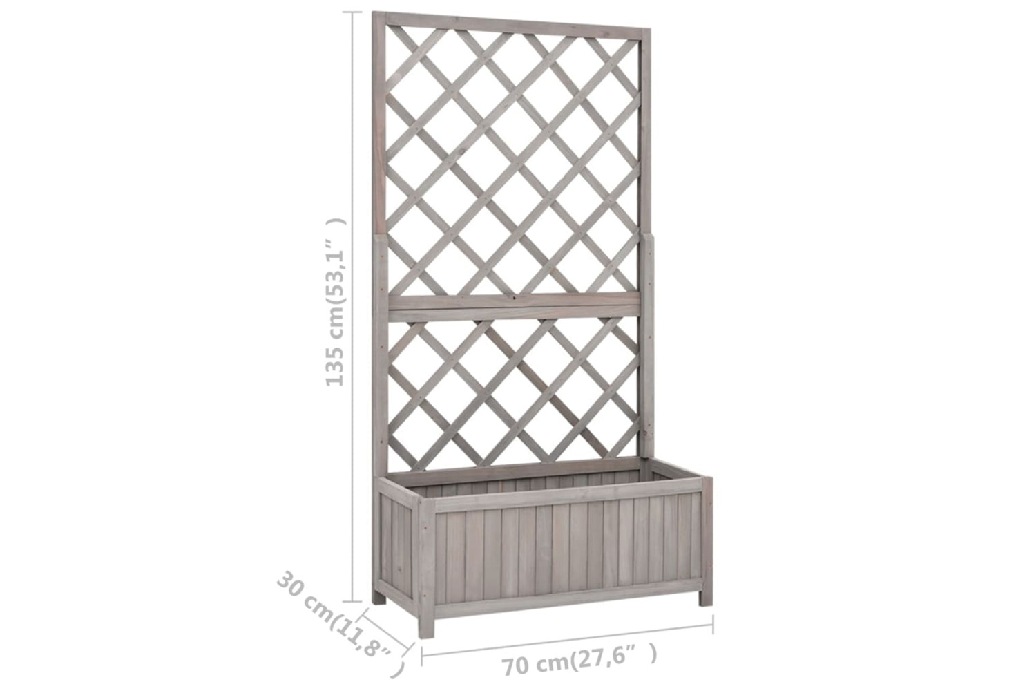This trellis planter, made of solid firwood, is sturdy and suitable for outdoor use. The planter also has a flower box to accommodate a large number of green plants and flowers. Additionally, the built-in trellis offers excellent support for climbing plants.