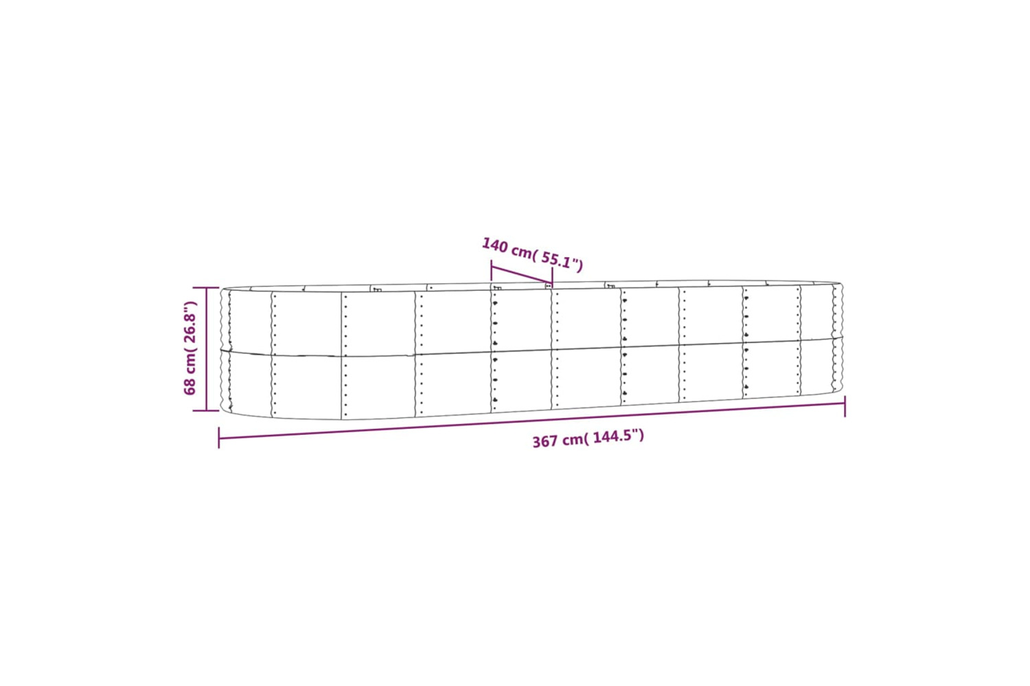 - Dimensions: 367 x 140 x 68 cm (L x W x H)