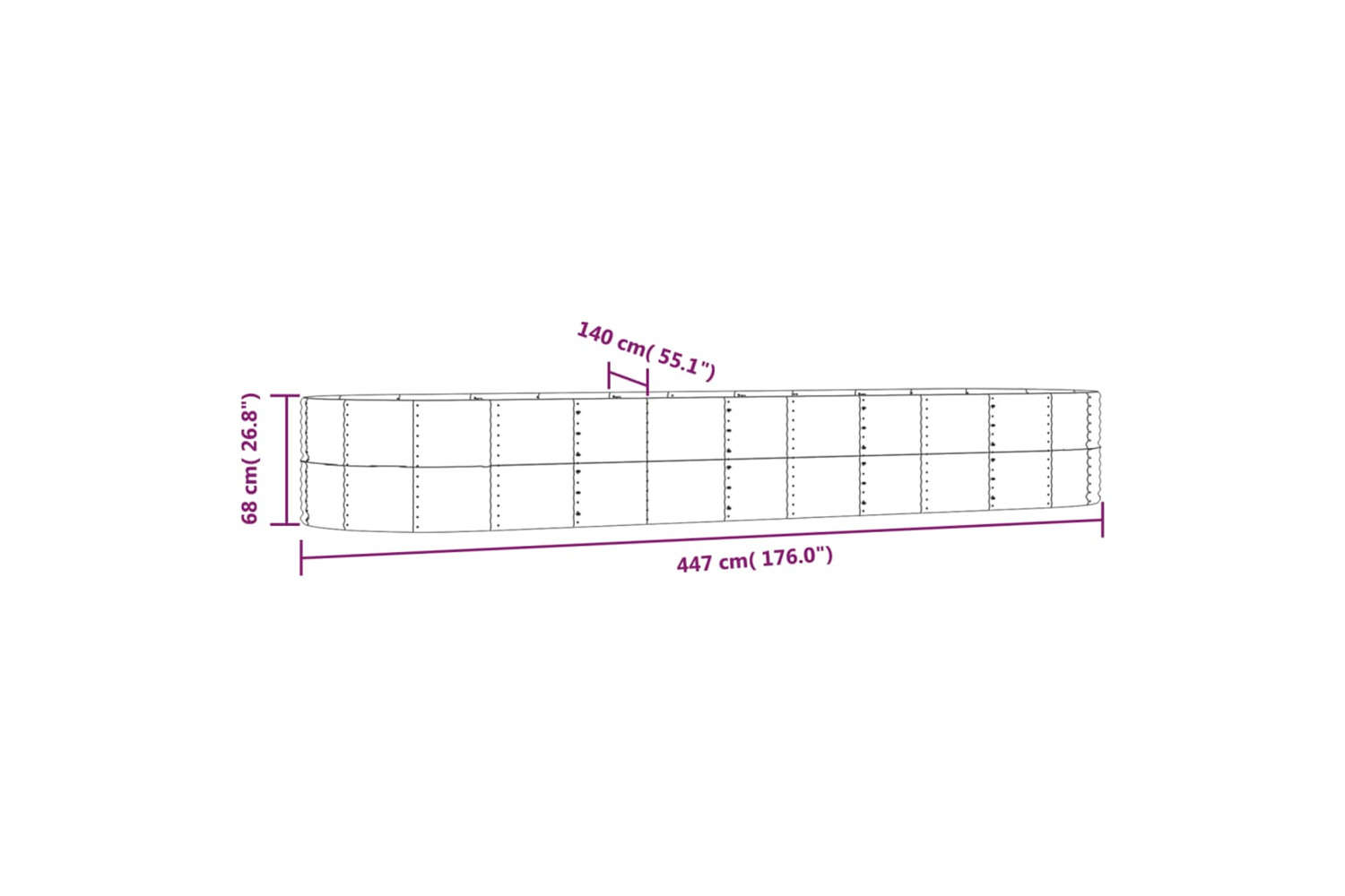 - Dimensions: 447 x 140 x 68 cm (L x W x H)